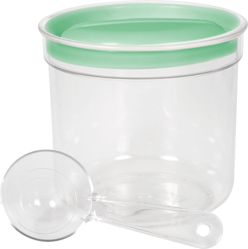 Dóza predstavuje jednoduché a praktické riešenie na skladovanie potravín na cestách. Obsahuje odmerku. Výber farby (mint, sivá alebo broskyňová) nie je možné ovplyvniť. Objem: 1 liter. Rozmery: 13×12 cm.