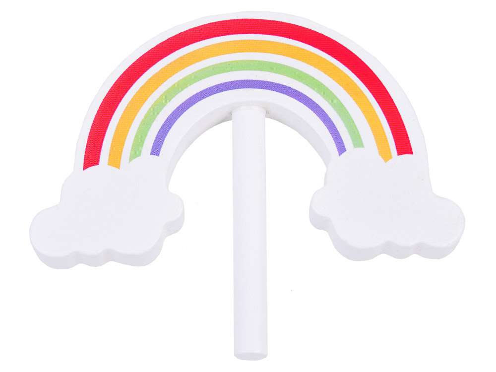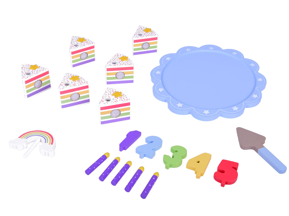 Celá „torta“ je umiestnená na elegantnom stojane na tortu a na servírovanie kúskov torty sa používa modrá špachtľa . Sada obsahuje aj čísla od 1 do 5 a sviečky. Celá sada je ozdobená jedinečnou dúhou a obláčikmi  , vďaka čomu je torta ešte chutnejšia.