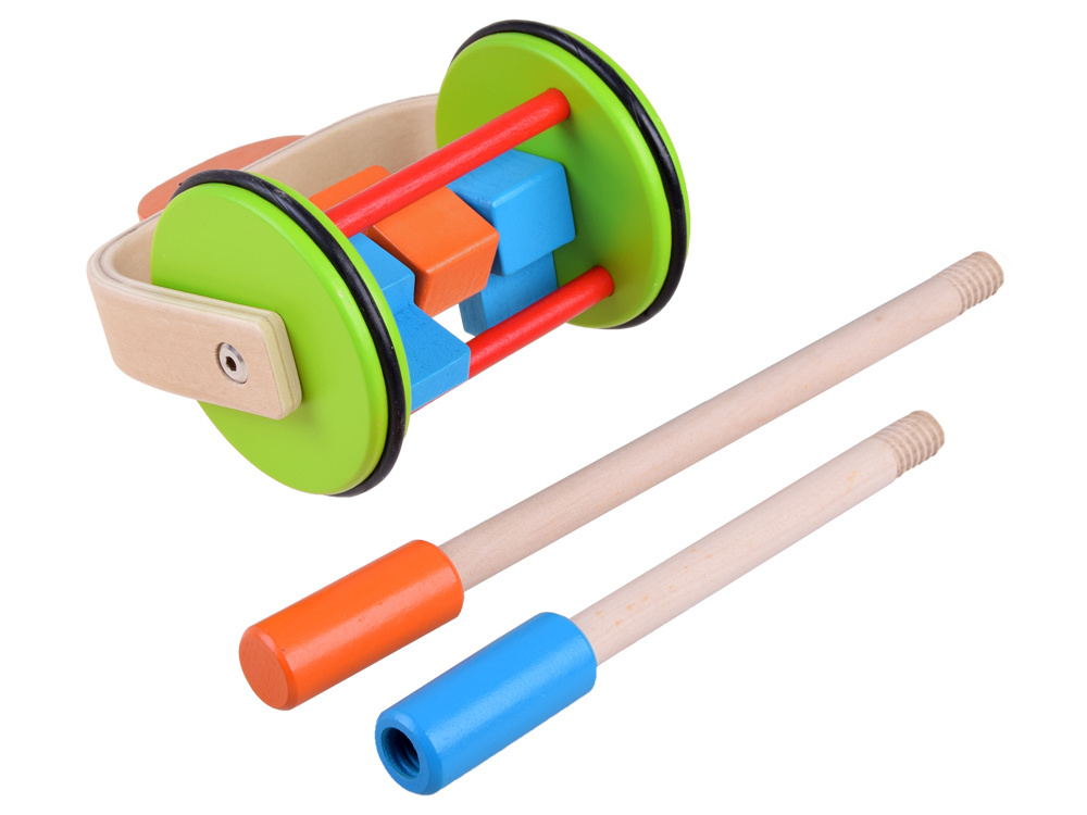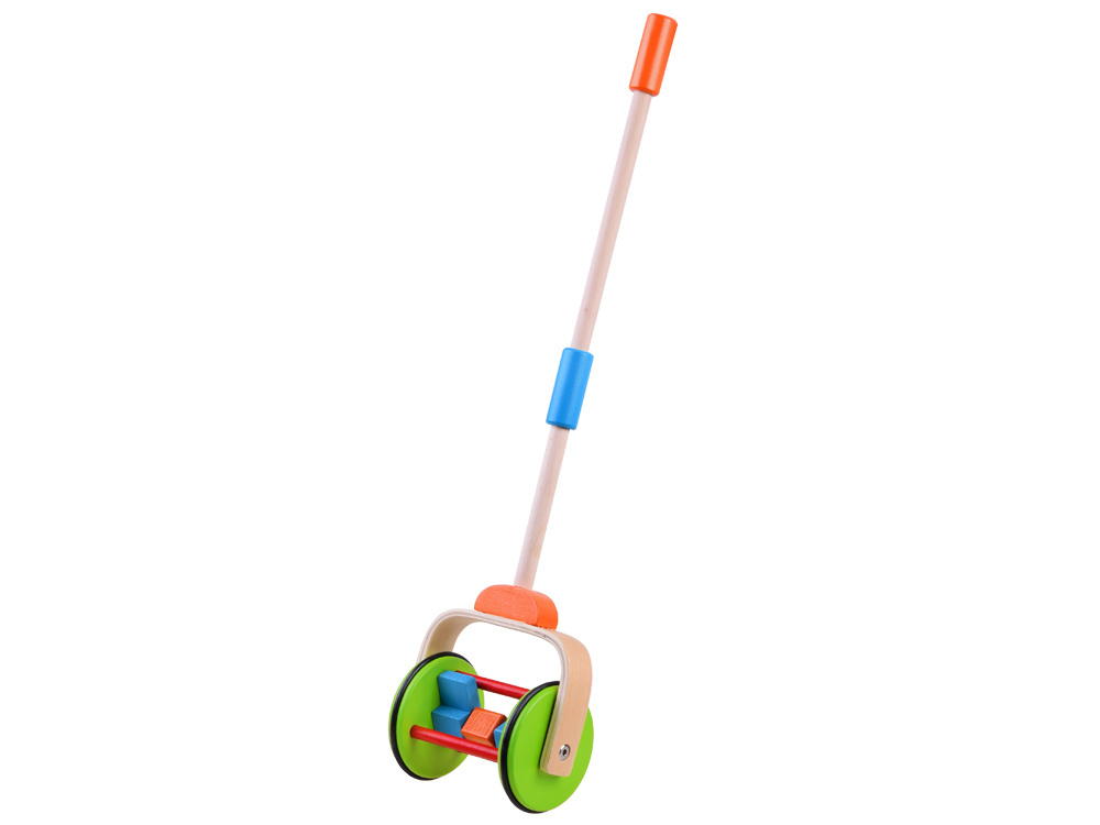 Táto farebná drevená valčeková hračka na tlačenie pre bábätká je ideálna pre každé batoľa, ktoré práve začína svoje pešie dobrodružstvo. Rukoväť valčeka sa otáča okolo vlastnej osi a vo vnútri farebné kocky pri tlačení radostne hrkajú.