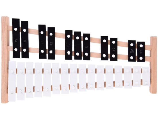 – Platničky: 27 kusov, kovové, obsahujúce dve oktávy a poltóny.
