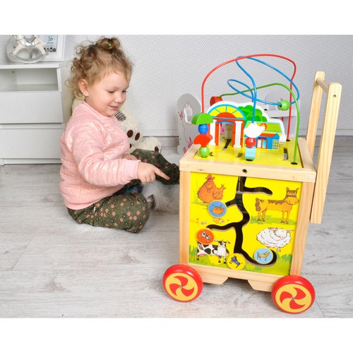 Odstrkovadlo s náučnou kockou má pozitívny vplyv na vývoj dieťaťa a zároveň poskytuje množstvo úsmevov a dobrej zábavy. Dieťa tlačí hračku pred sebou a učí sa robiť prvé krôčiky a zdokonaľovať nadobudnutú zručnosť. Vďaka špeciálne navrhnutej interaktívnej kocke sa dieťa rozvíja v mnohých rôznych oblastiach.