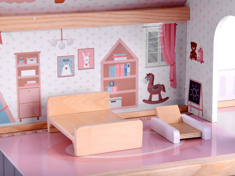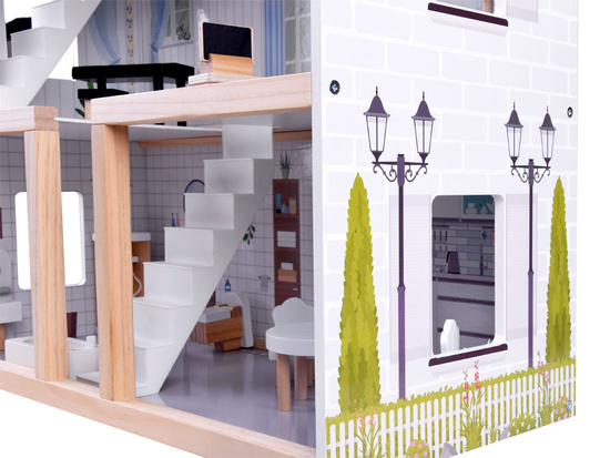 Tento štýlový dvojposchodový domček pre bábiky s nábytkom poskytne každému dievčatku skvelý čas na hranie. Je krásne vyrobený, poteší každé dieťa a hodí sa do každej detskej izby. Domček pojme bábiky ako Barbie a Anlily, ktoré ponúkame v obchode Jokomisiada. Domček má tri poschodia, každé z nich je elegantne a štýlovo zariadené. Domček pre bábiky je vybavený všetkým potrebným nábytkom pre pohodlné bývanie. Pôsobivá povrchová úprava domčeka poskytne nekonečný čas na hranie. Hračka vyžaduje svojpomocnú montáž. Montáž trvá maximálne 30 minút a je veľmi jednoduchá a intuitívna. Domček je zabalený v kartónovej krabici a zvnútra chránený polystyrénom pre bezpečnú prepravu.