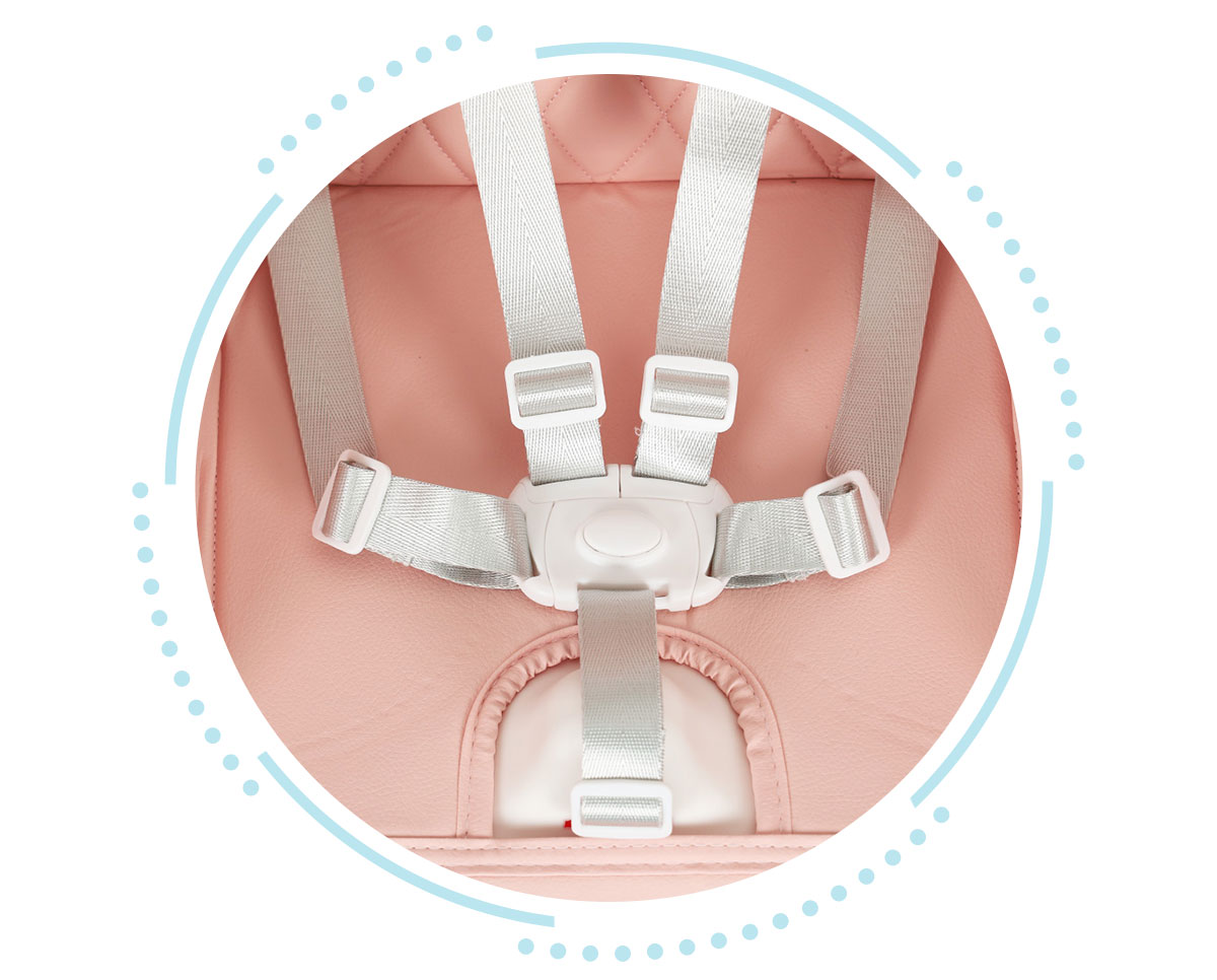 Sedačka je vybavená 5-bodovými bezpečnostnými pásmi, vďaka ktorému bude vaše dieťa správne zabezpečené a pásy budú tiež drž ho v správnej polohe.