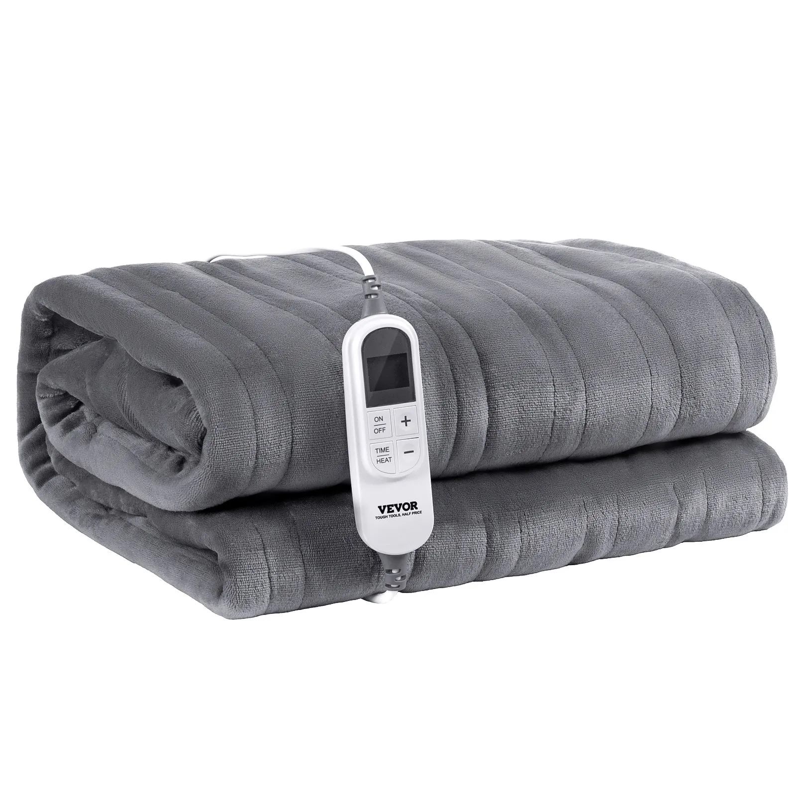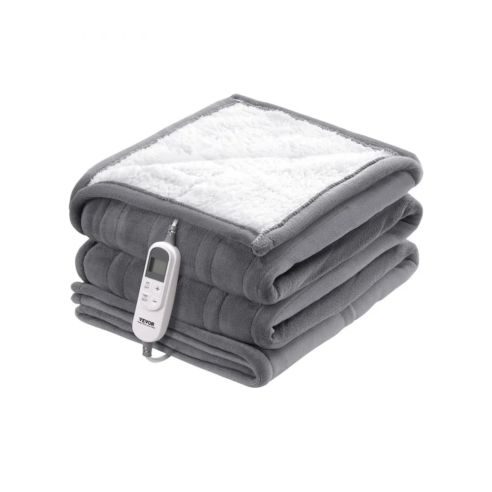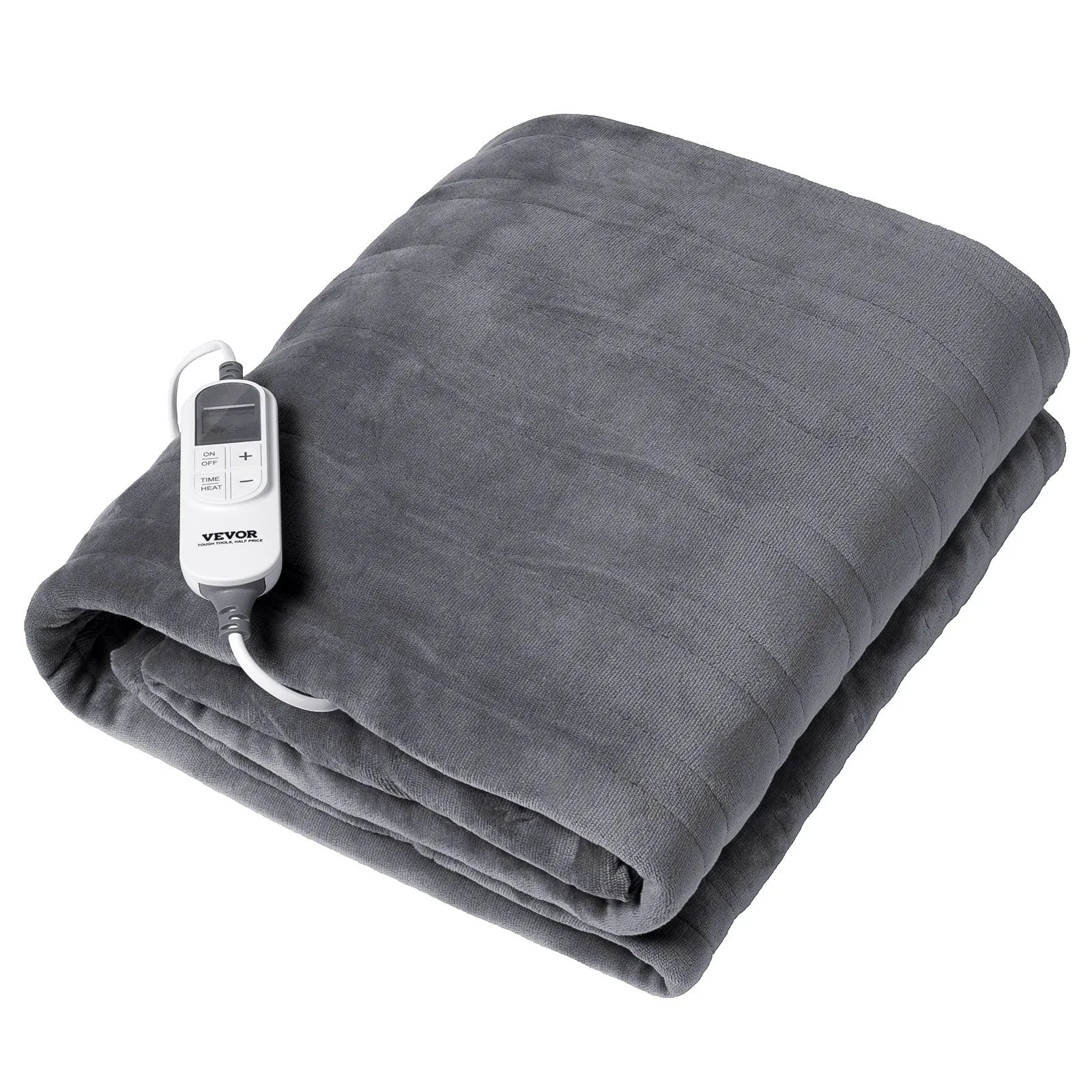 Elektrická deka, 150 x 200 cm, veľkosť Queen, elektrická deka vyrobená z mäkkej flanelovej jahňacej vlny, s 9 nastaveniami časovača a 6 úrovňami vykurovania, teplá deka ako darček k narodeninám, sivá