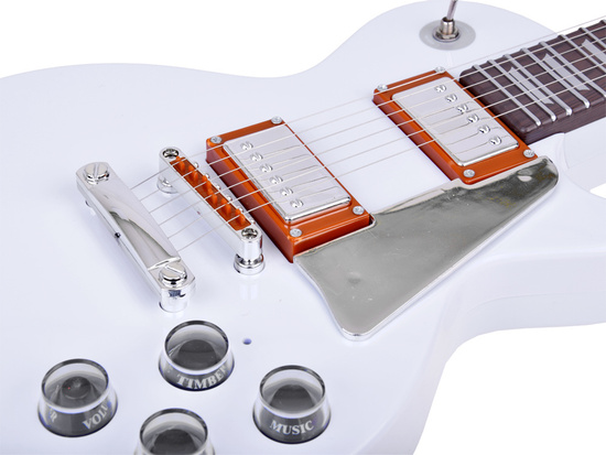 Táto biela elektrická gitara je perfektnou voľbou pre mladých hudobníkov, ktorí chcú začať svoju hudobnú cestu už v ranom veku. Hračka je navrhnutá tak, aby pripomínala skutočný nástroj a poskytovala realistický zážitok z hry.