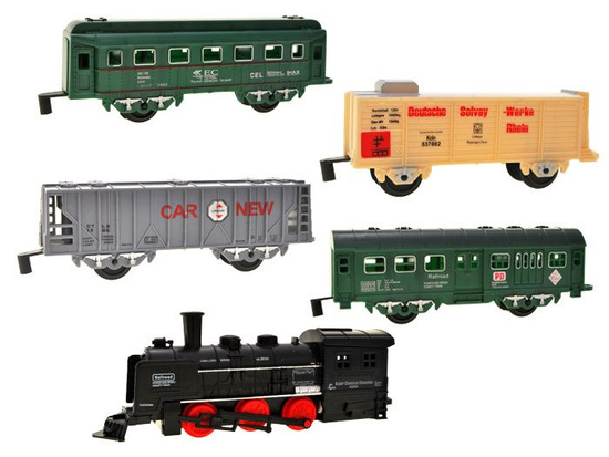 Tento krásny, starostlivo vyrobený vlak je bezpečná hračka. Náš vlak je poháňaný klasickou parnou lokomotívou. Sada obsahuje aj dva osobné a dva nákladné vagóny. Tento nádherný model vlaku s vagónmi je starostlivo vyrobený a určite poteší každého začínajúceho fanúšika modelových vlakov.