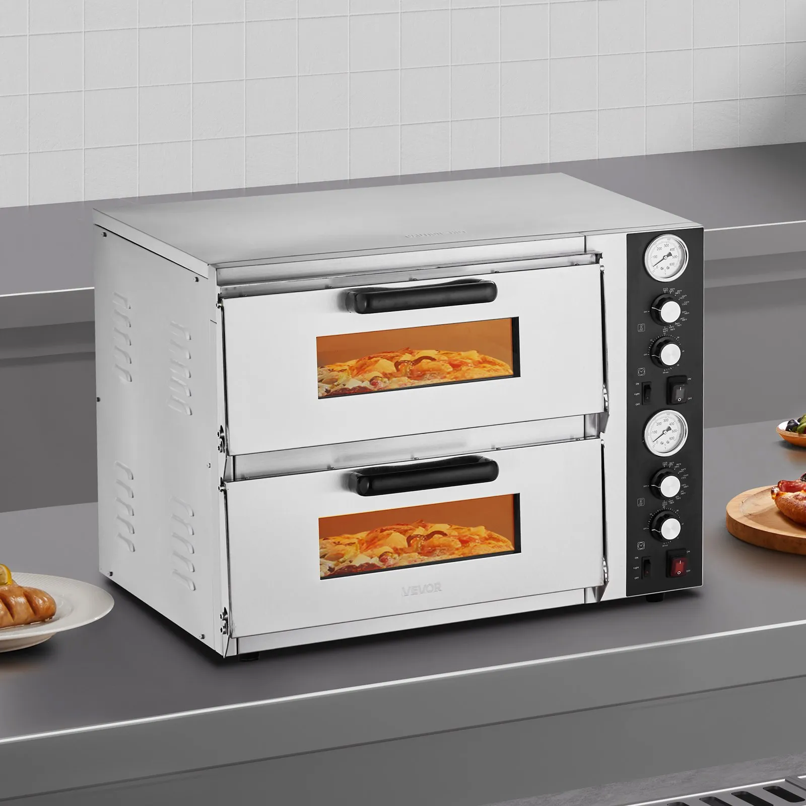 Priestranná dvojpodlažná konštrukcia s nezávislým ovládaním: Táto komerčná pec na pizzu s priemerom 457 mm (18 palcov) má hornú a spodnú podlahu so samostatnými časovačmi, ovládaním teploty a vstavanými teplomermi. Jej veľká kapacita umožňuje piecť štyri pizze s priemerom 23 cm alebo dve pizze s priemerom 45 cm súčasne – každá dokonale prepečená.