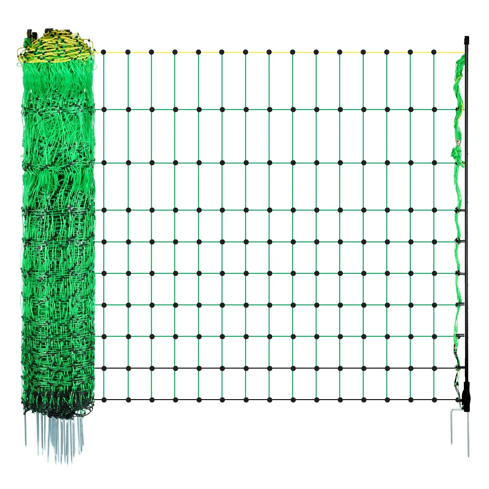 Elektrická plotová sieť, 1,21 x 30,48 m, sada PE plotovej siete so stĺpikmi a dvojitými hrotmi, praktická prenosná sieť pre sliepky, kačice, husi a králiky, na použitie na záhradách a farmách