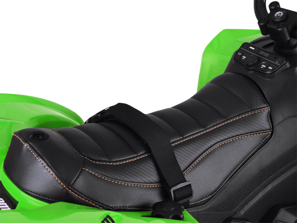 Vďaka dvom výkonným motorom si štvorkolka hravo poradí s kopcami, nerovnosťami a trávou. Vozidlo sa štartuje pomocou červeného tlačidla a po naštartovaní dieťa počuje zvuk štartovania motora. Štvorkolka sa pohne, keď stlačíte plynový pedál na pravej opierke nôh.Je tam vypínač na palubnej doske pre jazdu vpred, zastavenie, spiatočku a vypínač osvetlenia, ktorý je možné kedykoľvek vypnúť/zapnúť. Štvorkolka má hudobný modul s predinštalovanými melódiami, USB a MP3 vstup a FM rádio. Štvorkolka má veľké kolesá z EVA peny, tlmiče na zadnej náprave a široké pohodlné sedadlo potiahnuté ekokožou s bezpečnostnými pásmi. To všetko robí jazdu ešte pohodlnejšou. Štvorkolka je vyrobená z kvalitného plastu, takže mladému užívateľovi bude slúžiť dlhú dobu. Pozornosť venovaná aj tým najmenším detailom robí vozidlo skutočne fantastickým. Jazda na takejto štvorkolke je čistá radosť!