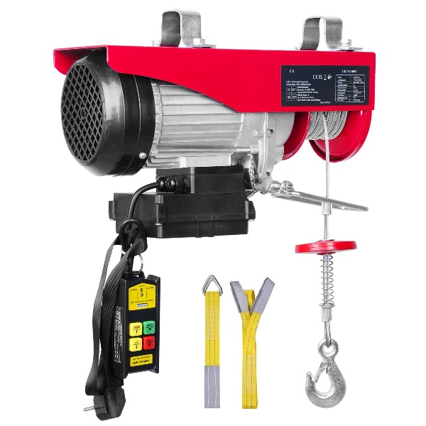 Bezdrôtové diaľkové ovládanie: Náš elektrický kladkostroj je vybavený bezdrôtovým diaľkovým ovládaním. Maximálna vzdialenosť ovládania je 100 m. Poskytuje skvelú funkciu spínača, ktorá umožňuje ovládanie elektrického kladkostroja jednou rukou na zdvíhanie, spúšťanie a umiestňovanie zariadenia.