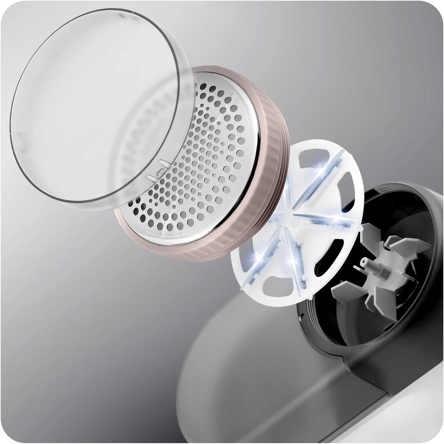 • 6 čepelí z nehrdzavejúcej ocele zaisťuje presné a účinné odstránenie žmolkov, chumáčov, uvoľnených nití a chumáčov z tkanín.