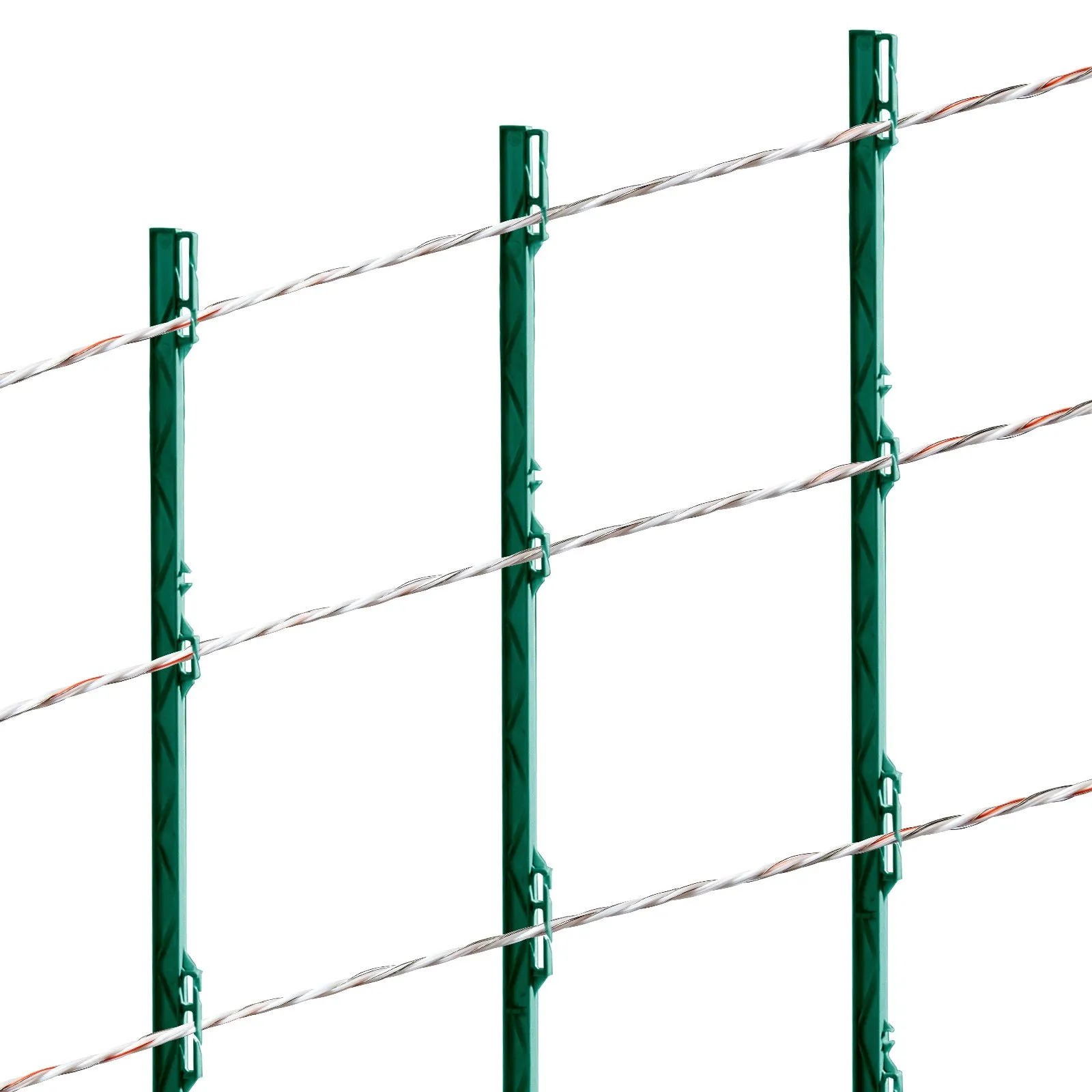 • Vysoká vodivosť: Vysoko viditeľný drôtený plot je vyrobený z vysoko vodivých drôtov z nehrdzavejúcej ocele a medi. Keď sa zvieratá dostanú do kontaktu s plotom, dostanú krátky, neškodný elektrický šok, ktorý spustí podmienený reflex a zabráni ďalšiemu kontaktu. To účinne zabraňuje vstupu divých zvierat na polia, do sadov, na pastviny a do záhrad, čím pomáha chrániť vaše hospodárske zvieratá a udržiavať bezpečnosť na vašej farme a v záhrade.