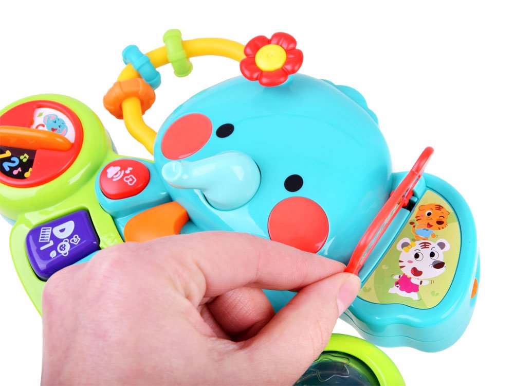 - chobot slona sa otáča, čo aktivuje zvukový efekt