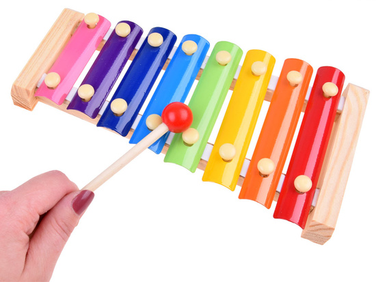 Farebné činely sú skvelým prvým hračkárskym nástrojom pre mladého hudobníka. Činely sú vyrobené z prírodného dreva s farebnými kovovými vložkami a dajú sa hrať v širokej škále hudobných štýlov. Súčasťou sady sú hudobné noty na obale činelu, ktoré môže vaše dieťa použiť pri svojom prvom pokuse o hru na činel. Grafika a farby činelov sú veľmi atraktívne a nepochybne si získajú u dieťaťa obľubu.