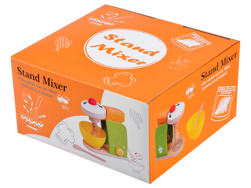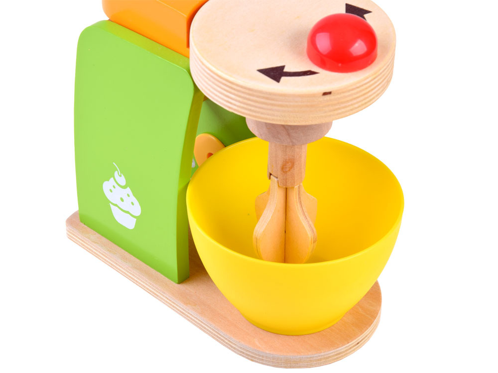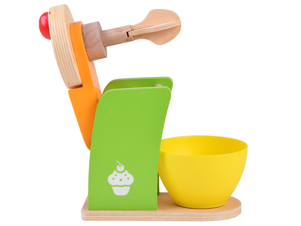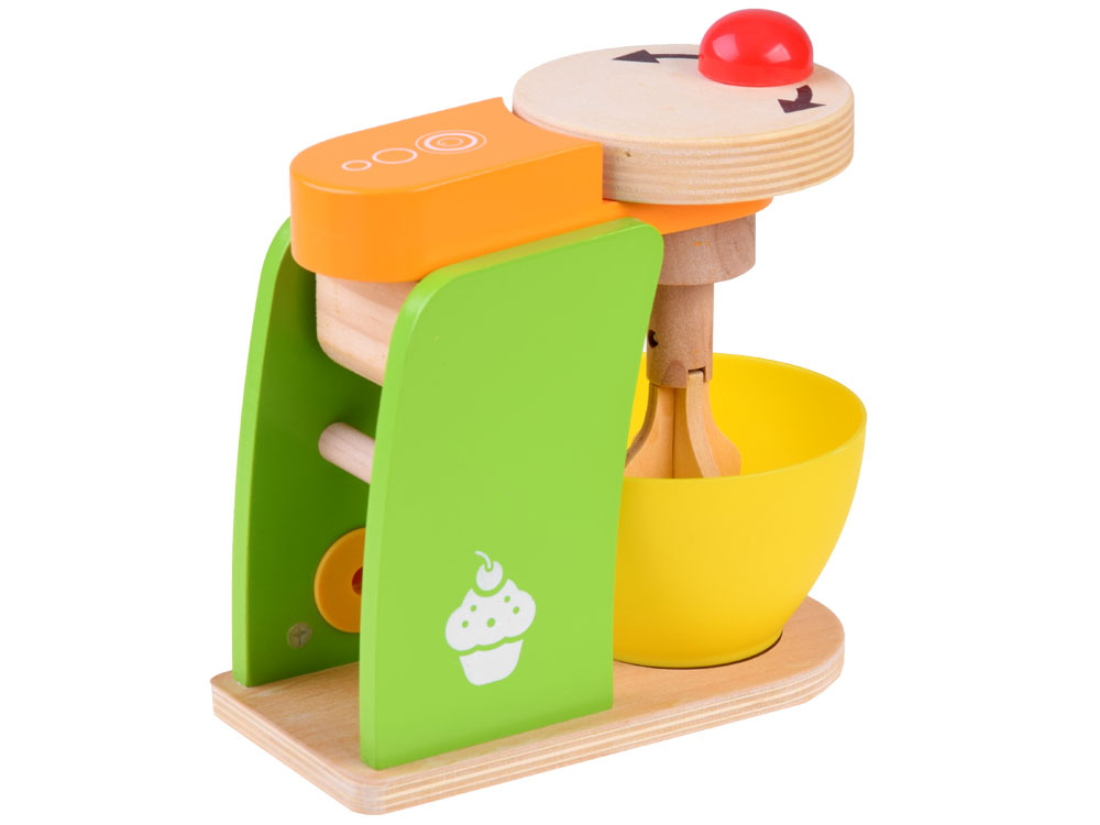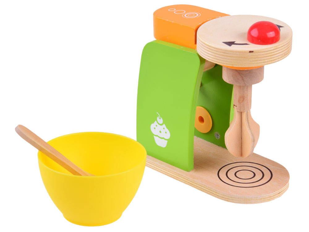 Mixér je vyrobený výlučne z dreva, okrem misky, ktorá je plastová pre ľahké a pohodlné nosenie. Použitie prírodných materiálov zaisťuje odolnosť a zaoblené hrany zaisťujú bezpečnosť počas hry. Je to ideálna voľba pre rodičov, ktorí si cenia ekologické a odolné hračky.