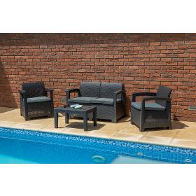 Zostava je zložená z 2 kresiel, 2-miestnej sedačky a konferenčného stolíka