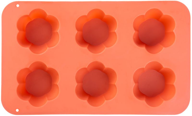 Forma MagicHome, na pečenie, na 6 muffinov, silikón, vzor kvet, červená, 28,6×17,2 cm
