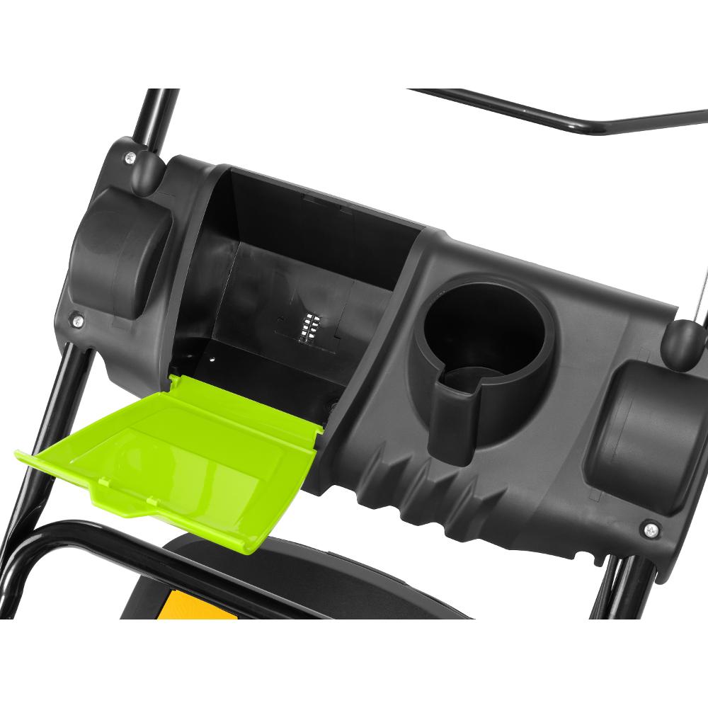 možné kosačku držať pri čistení. Kolesá sú uložené na guličkových ložiskách pre dlhšiu životnosť. Sklopné madlo je pre vyšší komfort pri práci