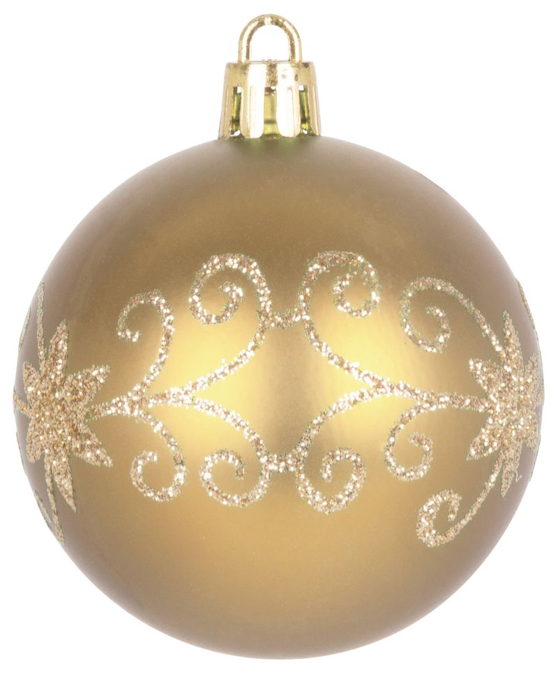 Súprava ozdôb na stromček slúži na slávnostné ozdobenie vianočného stromčeka. Pozostáva z 20 ks vianočných gúľ s priemerom 6 cm. Farba gúľ je zlatá. Sú vyrobené z plastu.