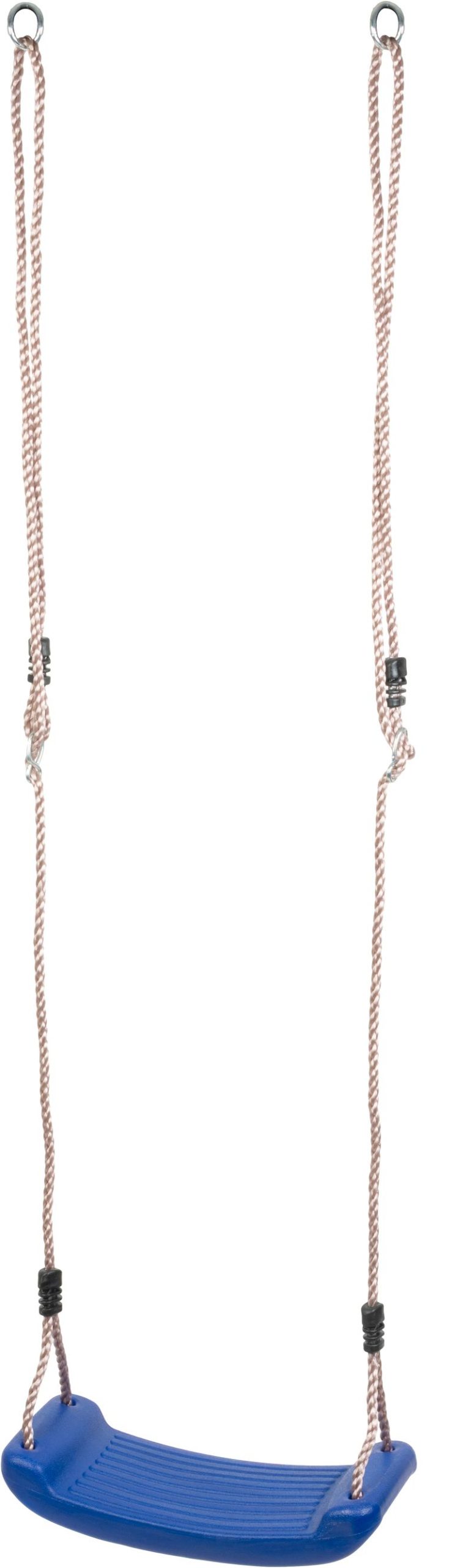 Detská modrá plastová hojdačka je praktická, ľahko umiestniteľná takmer kdekoľvek vo vašej záhrade. Hojdačka nemá opierku a nemá ani prednú ochranu pred pádom, preto je potrebné na dieťa dávať po celý čas pozor. Nosnosť hojdačky je 70 kg a jej rozmery sú 43 x 17 x 8,5 cm. Na oboch stranách sedacej časti sú pripevnené laná dlhé 2 m, s priemerom 10 mm. Je potrebné ich poriadne uviazať na miesto, kde chcete hojdačku mať. Uistite sa, že je pripevnená správne, nie príliš vysoko a že nehrozí riziko poranenia.