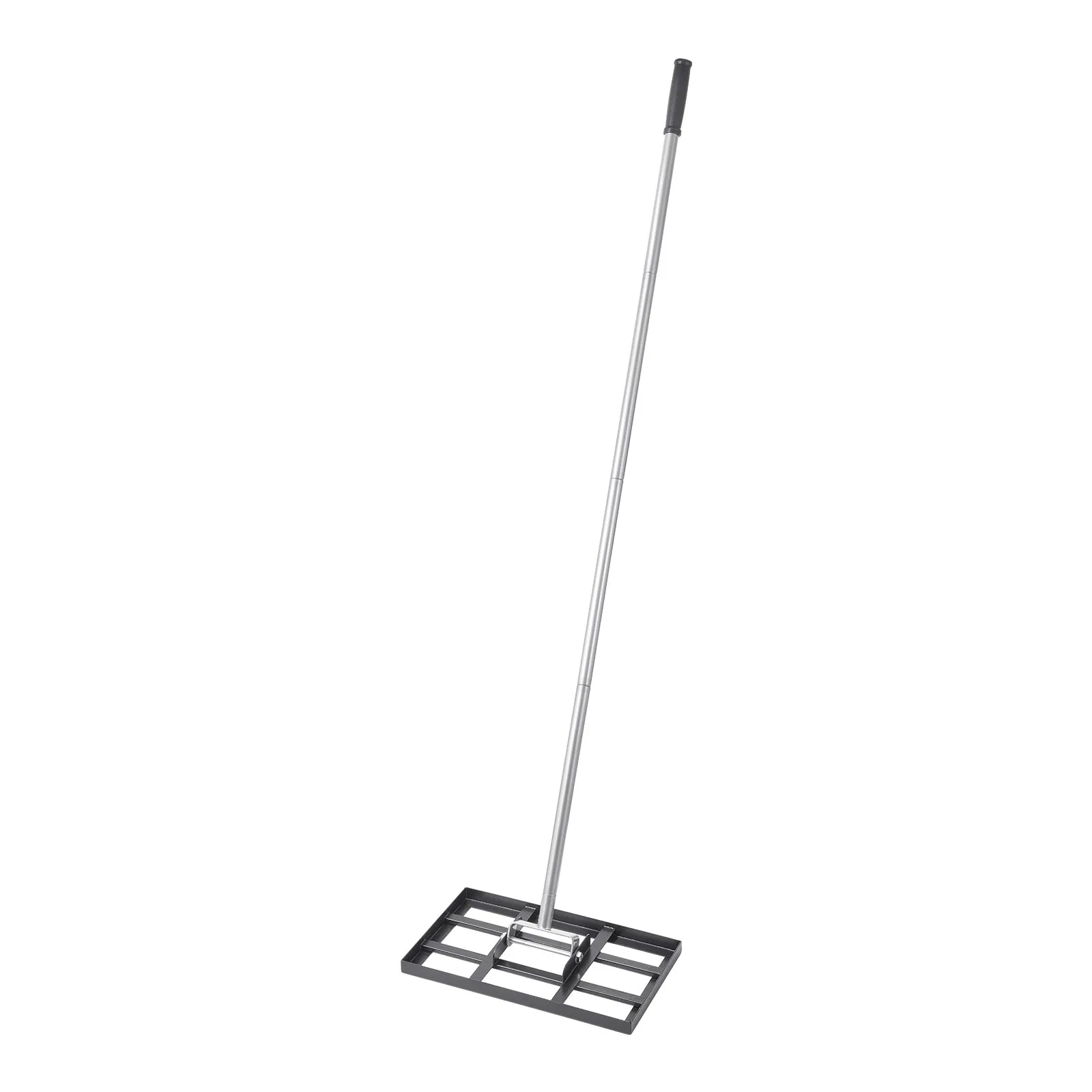 Veľké hrable na vyrovnávanie trávnika: Naše hrable na vyrovnávanie trávnika majú základnú dosku z uhlíkovej ocele s rozmermi 43,2 x 25,4 cm. S hmotnosťou 3,2 kg uľahčujú vyrovnávanie a predchádzajú problému s príliš nízkou hmotnosťou na tlačenie. To vám šetrí čas a energiu a umožňuje vám rýchlo a efektívne vyrovnať trávnik.