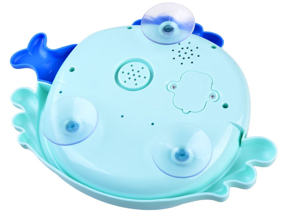 V spodnej časti hračky sa nachádza odnímateľná nádoba. Naplňte ju zmesou peny do kúpeľa (cca 5-30 ml) a vody (2/3 nádoby), potom hračku zapnite pomocou tlačidla ON, ktoré sa nachádza na veľrybím oku, a zábava sa môže začať! Po zapnutí tento spoločník do kúpeľa zabaví každé dieťatko neuveriteľným množstvom bublín a veselých melódií.