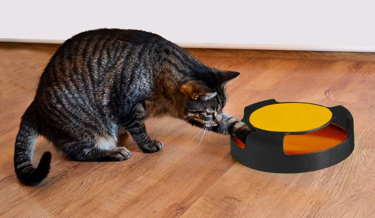 myš, ktorá sa po zásahu labkou dá do pohybu a otáča sa po obvode kruhu, čím povzbudí mačku k ďalšej hre. Je okrúhleho tvaru a má 3 otvory. Otvory sú dostatočne veľké, aby sa do nich zmestili mačacie nohy akejkoľvek veľkosti. Vnútri je napodobenina myši, ktorá sa po údere labkou dá do pohybu a točí sa po obvode kruhu a tým povzbudzuje mačku k ďalšej hre.