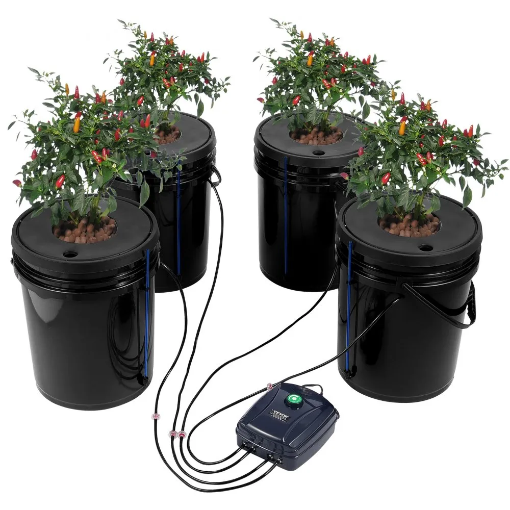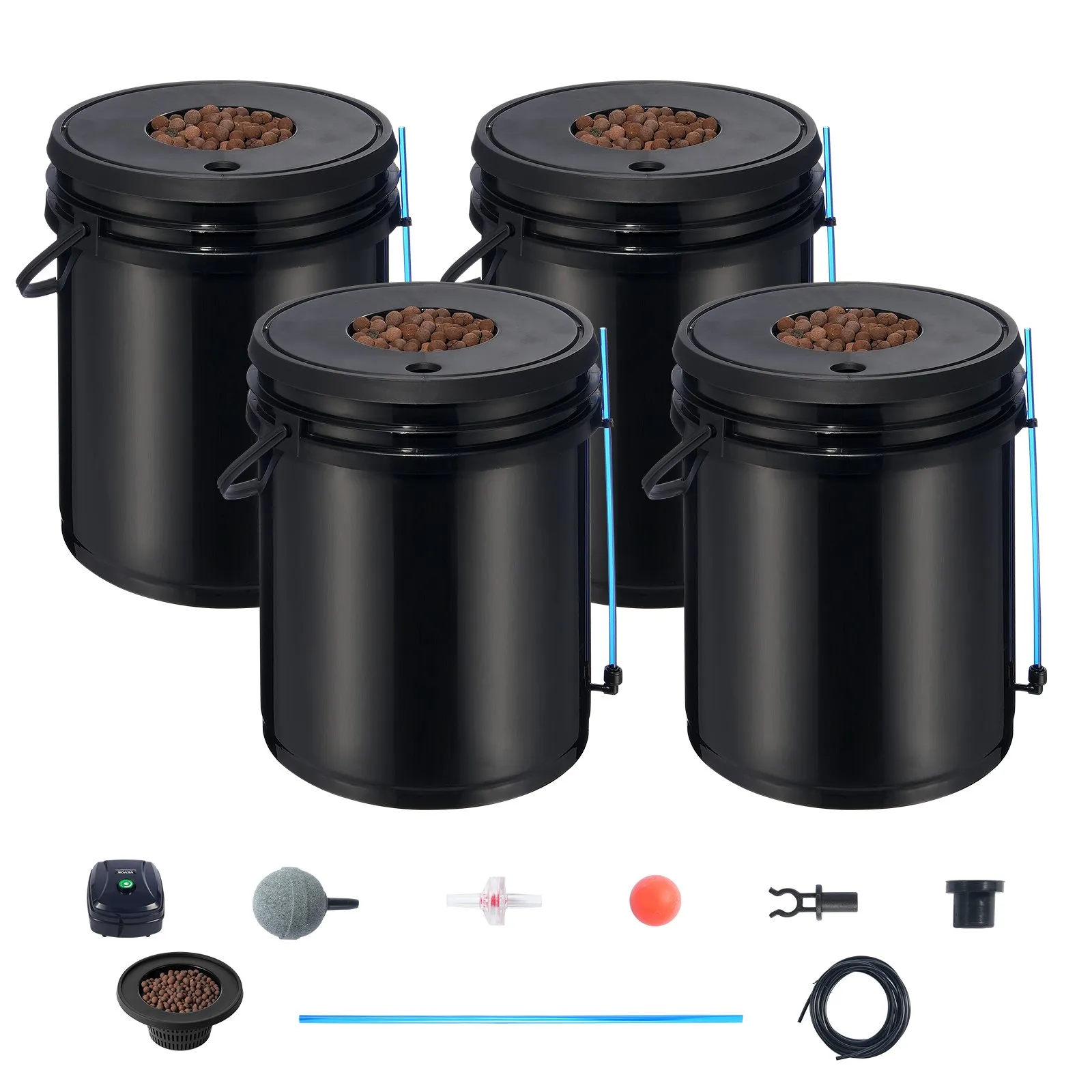 Hydroponický pestovateľský systém DWC, hydroponický pestovateľský systém, hlbokovodná kultúra s objemom 5 galónov a 4 vedrá, systém DWC so vzduchovým čerpadlom, vzduchovacími kameňmi a indikátorom hladiny vody pre listovú zeleninu