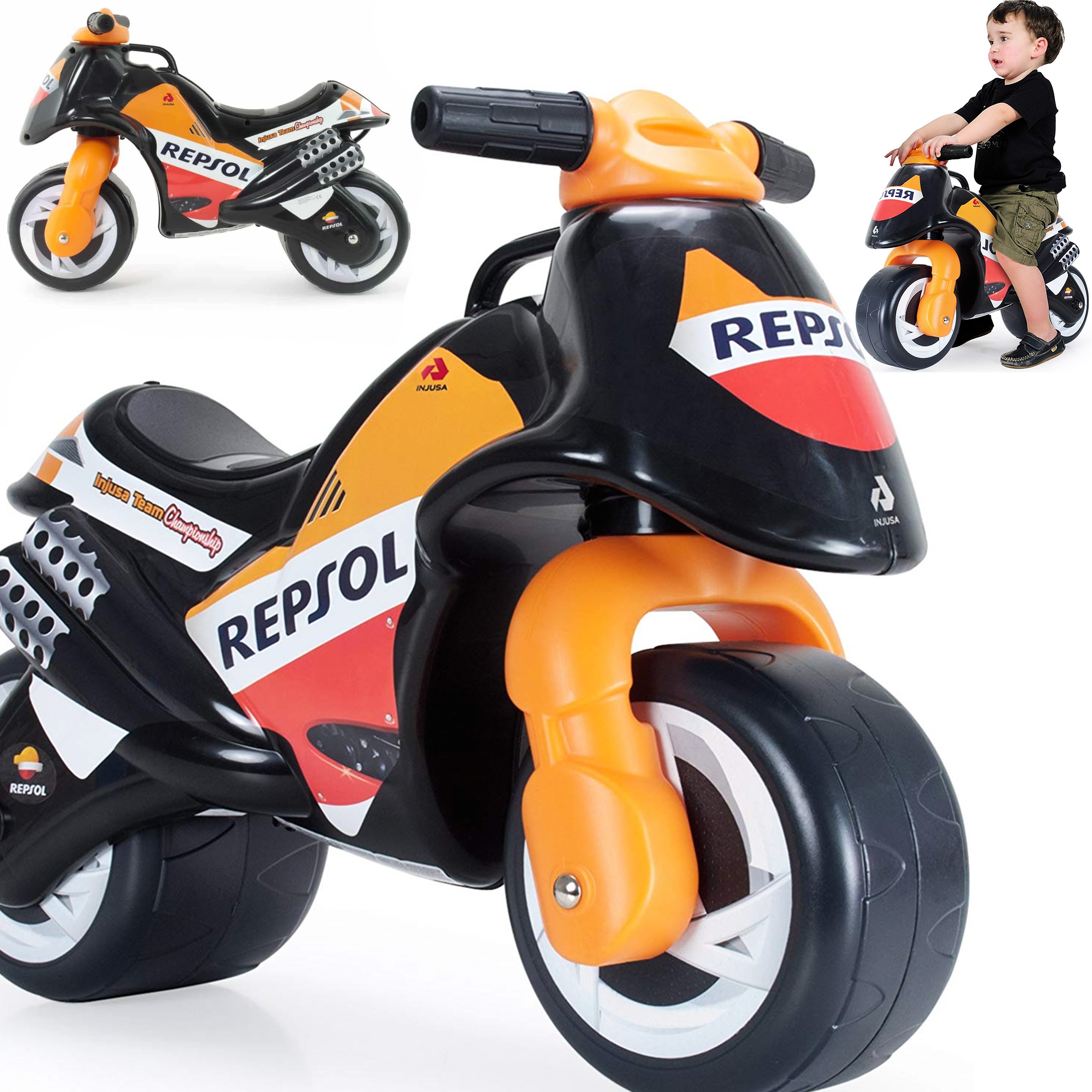 Táto odrážadlo od renomovanej španielskej spoločnosti INJUSA je perfektnou voľbou pre najmenších automobilových nadšencov. Široké kolesá pomáhajú deťom ľahko udržiavať rovnováhu , zatiaľ čo ergonomické sedadlo a otočné predné koleso zaisťujú pohodlnú a bezpečnú jazdu. Oficiálna licencia Repsol a športový čiernooranžový dizajn dodávajú vozidlu jedinečný vzhľad. Jeho robustná konštrukcia a odolné nálepky In-Mould (IML) zaručujú dlhú životnosť. Je ideálne na vnútorné aj vonkajšie použitie a pohodlná rukoväť uľahčuje prenášanie.