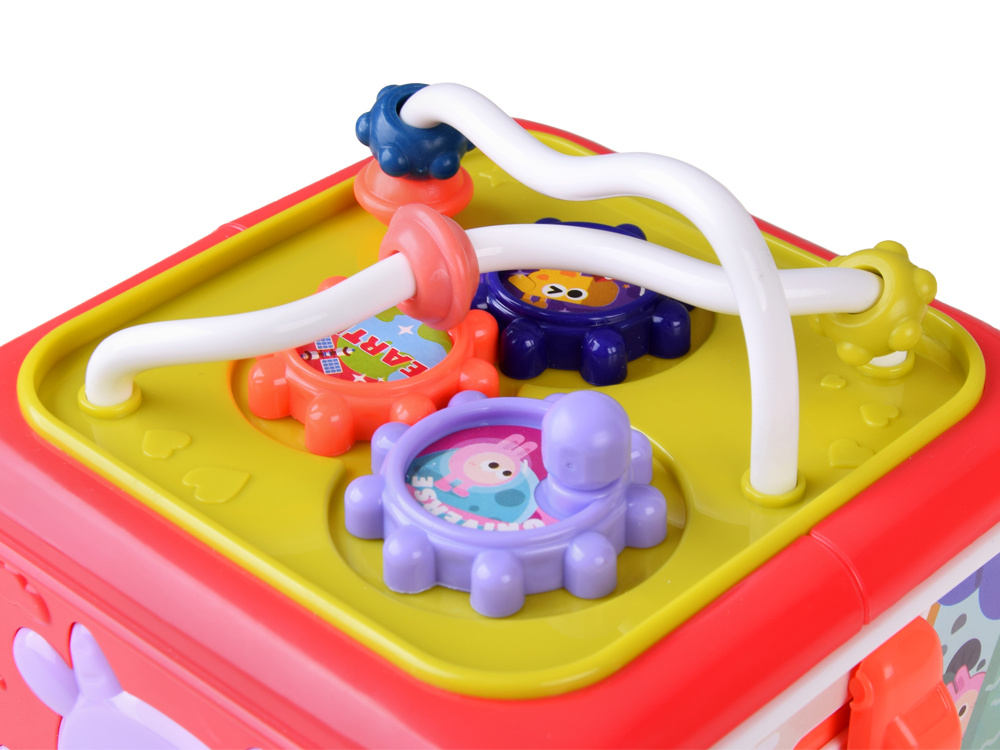 Táto vzdelávacia interaktívna kocka je určená pre deti vo veku 18 mesiacov a viac. Je navrhnutá tak, aby zapájala a rozvíjala detské zručnosti v rôznych fázach vývoja. Vďaka rôznym hračkám na každej strane nie je potrebné nosiť si so sebou celú tašku hračiek na výlety, návštevy lekára alebo dokonca pri návšteve lekára. Jedna viacúčelová kocka stačí na to, aby sa váš malý objaviteľ zabavil na dlhý čas.