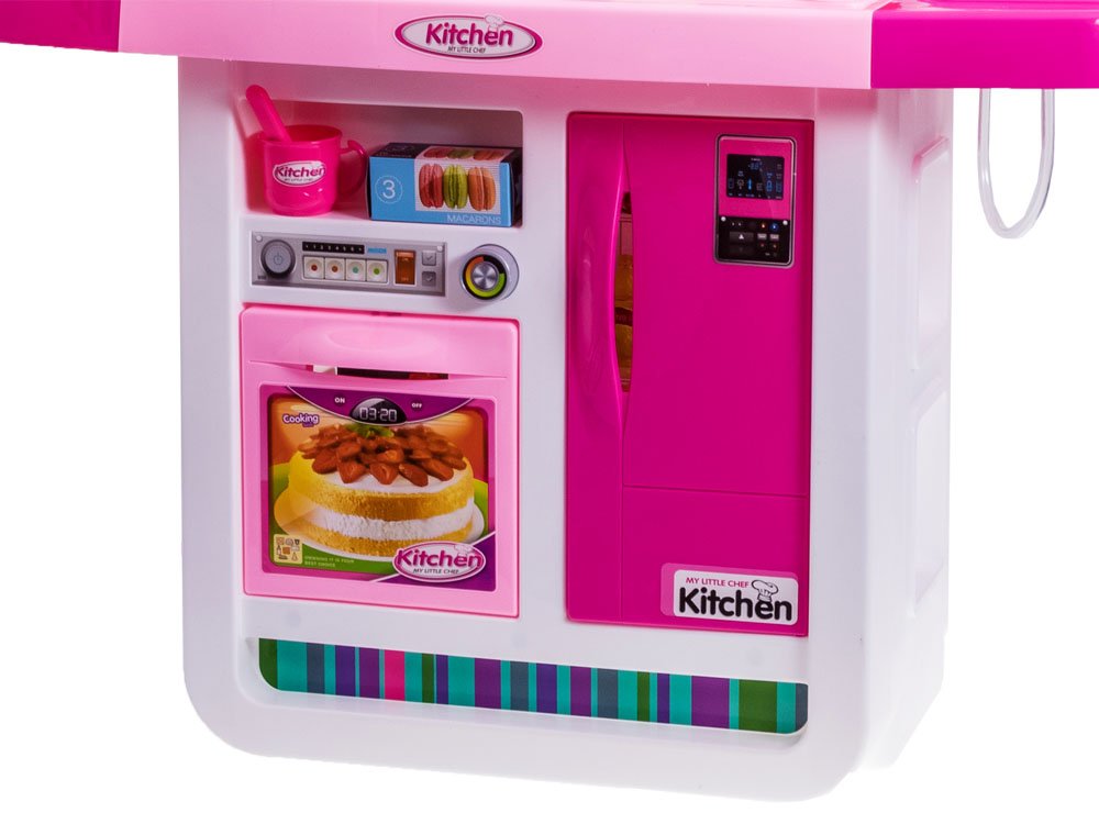 Takmer každé malé dieťa rádo pomáha pri príprave domácich jedál, a ak mu to nechutí , bude sa im zrejme páčiť vďaka tejto úžasnej sade. Bezpečná kuchynka pre domček, reštauráciu, bar – to je ponuka pre vaše deti. Skvelý tip na darček pre mladých budúcich kuchárov, kuchárskych pomocníkov, reštaurátorov a pod. Hra na varenie rozvíja detskú fantáziu, učí ich zásadám varenia a učí ich domácim prácam. Je čistým potešením „jesť“ chutné jedlo pripravené vlastným dieťaťom. Malý kuchár teraz bude môcť jednoducho zorganizovať narodeninovú oslavu pre svoje bábiky a medvedíkov. Ešte väčšia zábava je, že pri hraní je v kuchyni chladnička na uskladnenie jedla, rúra, drez a všetko potrebné v kuchyni.