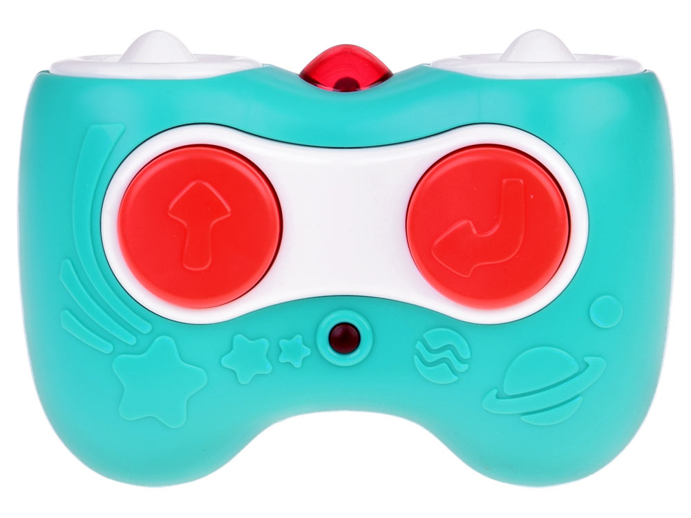 Má dve tlačidlá – jedno riadi vozidlo dopredu a druhé umožňuje cúvanie.