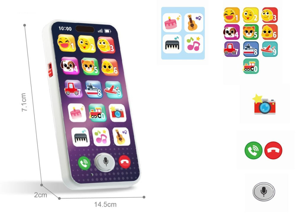 Ak vaše dieťa zvedavo hľadí na telefón svojich „rodičov“ a pri každej príležitosti po ňom dychtivo siaha, tento farebný interaktívny telefón je perfektným riešením. Táto hračka je navrhnutá tak, aby vyzerala a fungovala ako skutočný smartfón, a je úplne bezpečná a vhodná pre malé rúčky. Vďaka svojmu tenkému, praktickému a ľahkému dizajnu je ideálna na doma aj na cesty.