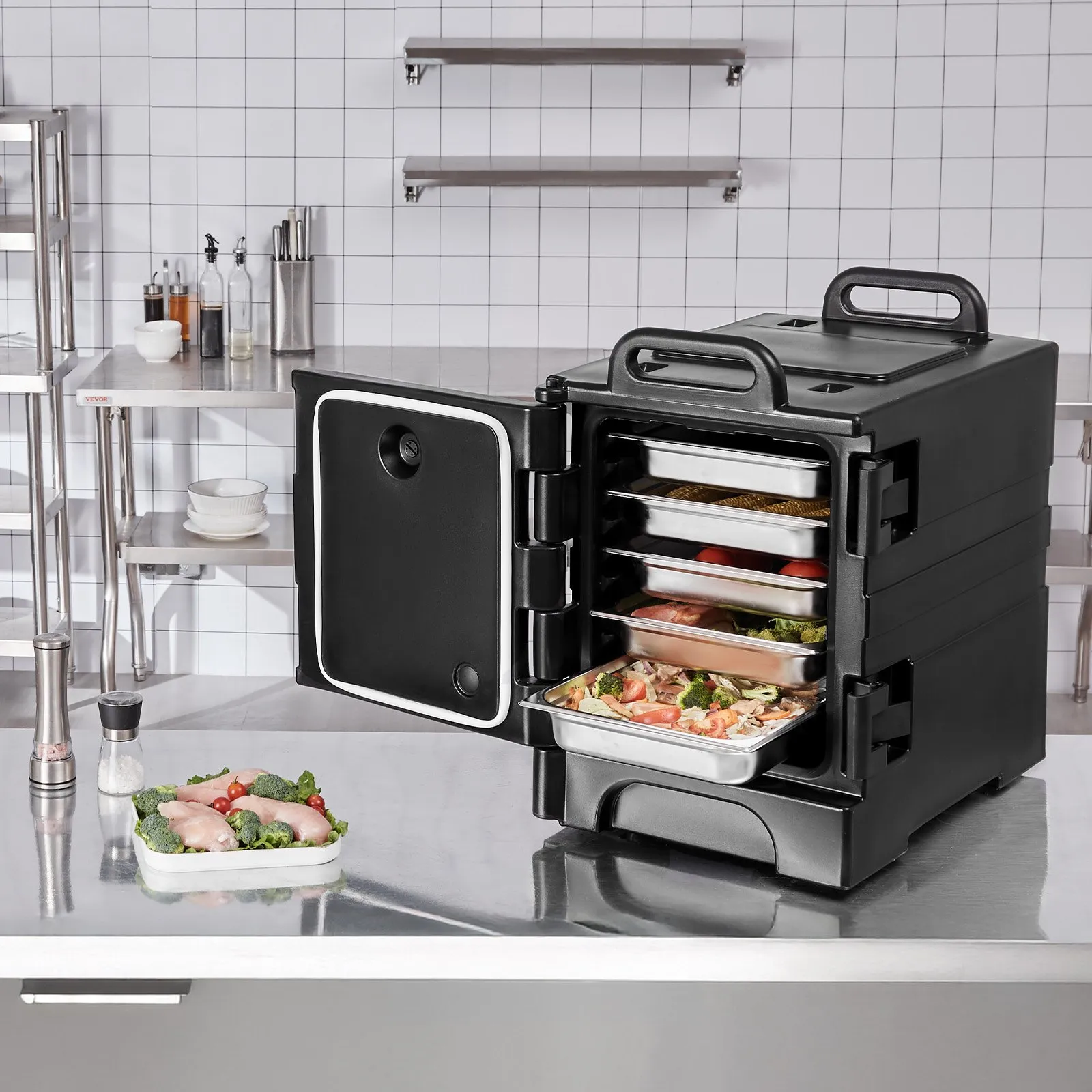 Izolovaný nosič nádob na potraviny, 75l ohrievač potravín na catering, nádoba na potraviny s dvojitými prackami a rukoväťami, nosič potravín, prepravná škatuľa na potraviny, reštaurácia, kantína, čierna