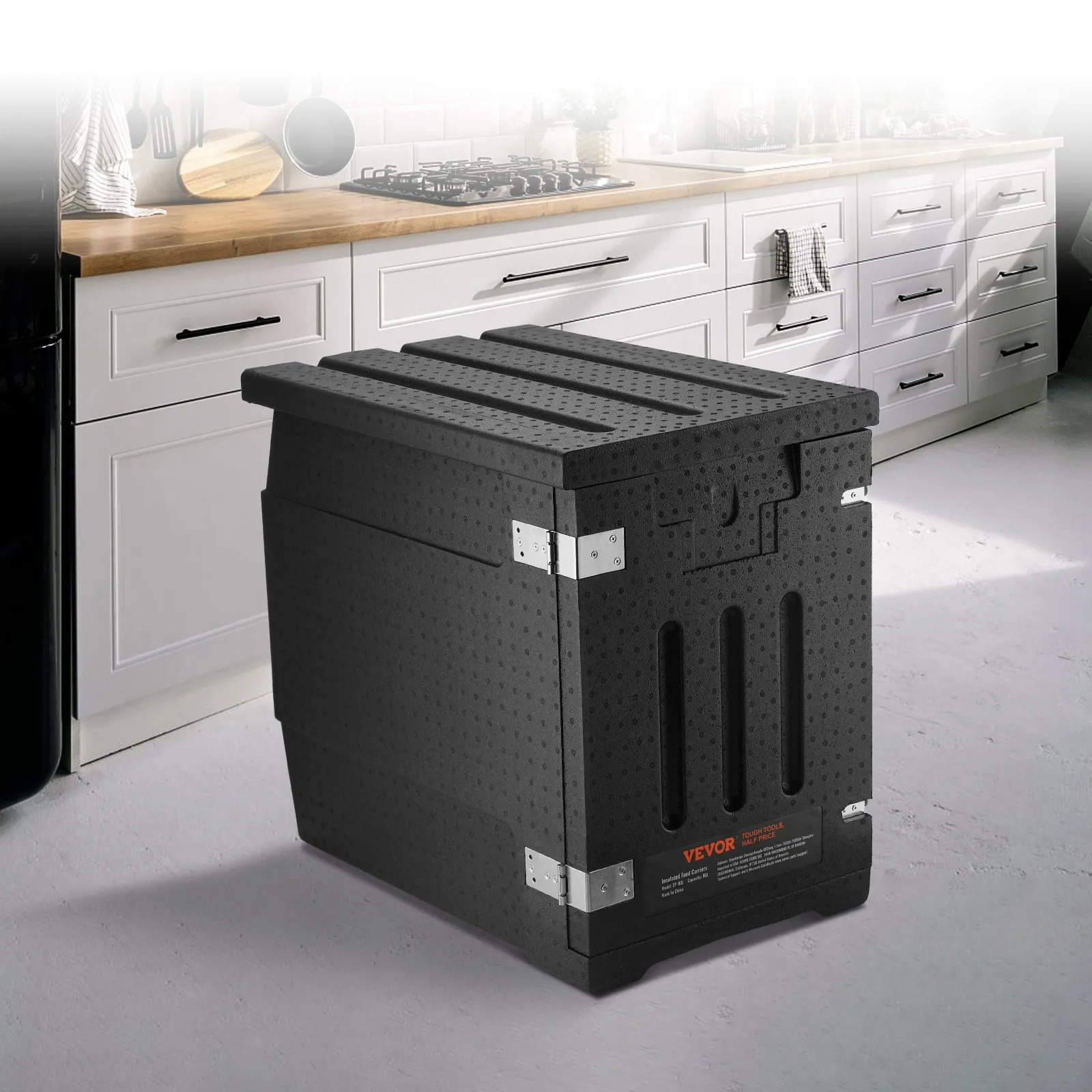 Veľký vnútorný objem: Miesto na všetko jedlo naraz! S kapacitou 82 QT (90 l) sa do našich cateringových teplých boxov zmestí šesť tanierov s výškou 2,5 palca (6,35 cm) alebo tri taniere s výškou 6,5 palca (16,51 cm). Môžete prepravovať veľké množstvo jedla naraz. Viacpriestorový dizajn umožňuje flexibilné konfigurácie vnútorného priestoru. Odporúča sa skladovať teplé a studené jedlá oddelene.