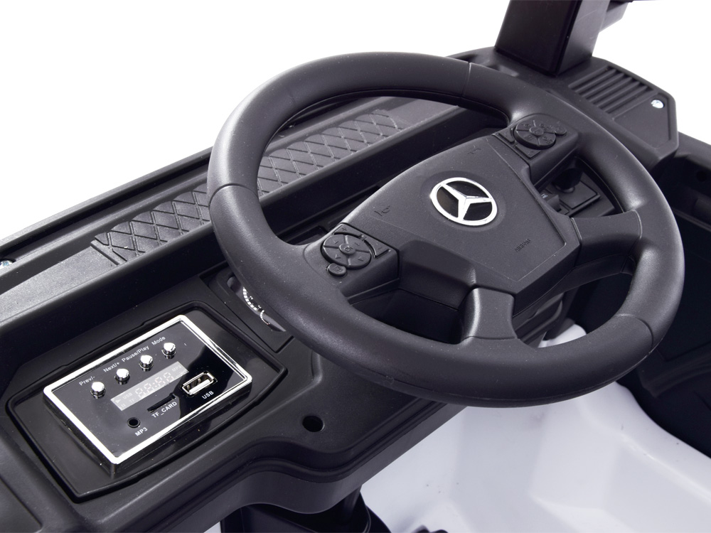 Akumulátorový automobil Mercedes Benz Actros TIR s licenciou Mercedesu je skutočným zážitkom pre každého vodiča.Vozidlo so 4 motormi a 2 výkonnými batériami vám dá pocítiť ako skutočný vodič veľkého vozidla .Auto má 4 výkonné motory 12V 13000RPM + 2 x 12V 7Ah gélové batérie + kľúče + 2,4Ghz DIAĽKOVÝ OVLÁDAČ pre rodiča.