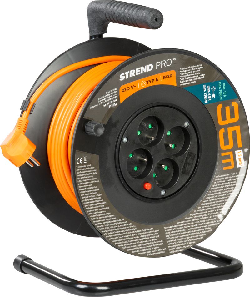 Kvalitný predlžovací kábel Strend Pro DG-FB04 v oranžovom prevedení namotaný na bubne je dlhý 35 metrov. Efektívne rozšíri prívod elektriny do vzdialených miest. Na bubne má štyri zásuvky (230 V), takže môžete napájať viacero zariadení naraz. Skvelo sa hodí do domácnosti alebo záhrady. Kábel je vhodný pre maximálnu zaťaž až do 3 000 W/16A , v prípade že je úplne rozvinutý. Maximálna záťaž pri navinutom kábli je 1200 W/16 A. Kábel má vodiče s prierezom 1,5mm.