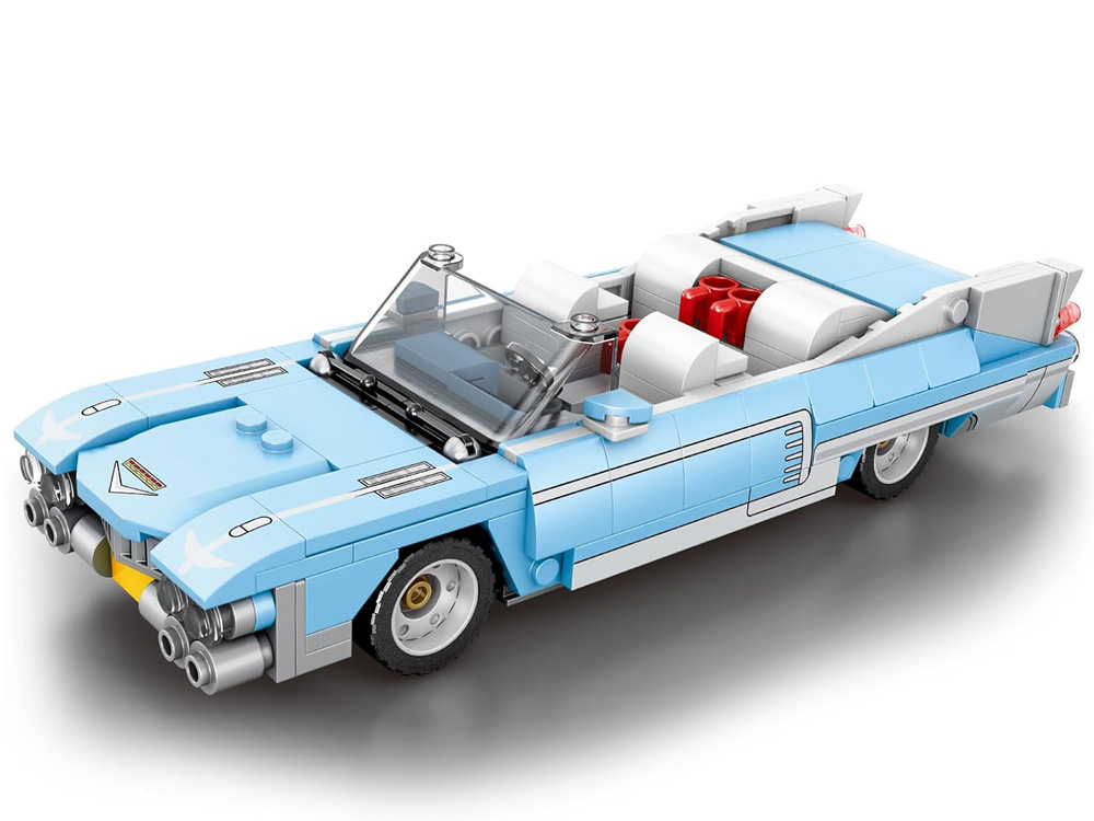 Technická stavebnica Modrý kabriolet je ideálna pre fanúšikov klasických áut a elegantného dizajnu amerických automobilov 50. rokov 20. storočia . Model zaujme svojím štýlom – dlhou kapotou, nízkou siluetou a výraznými chrómovými detailmi pripomínajúcimi luxusné vozidlá minulých rokov.