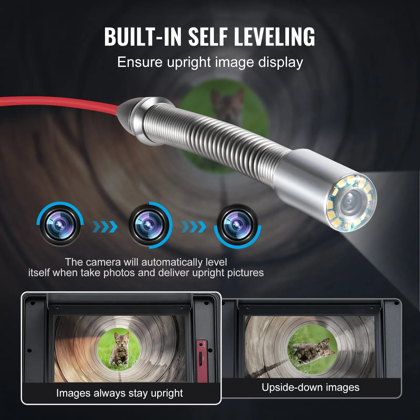 Kanalizačný fotoaparát VEVOR, 100 m samonivelačná inšpekčná kamera na potrubie s 10,1-palcovou dotykovou obrazovkou, vysielačom 512 Hz a počítadlom vzdialenosti, IP67 inšpekčná kamera na potrubie s 12 LED diódami a 32 GB kartou, endoskop pre kanalizačné potrubia