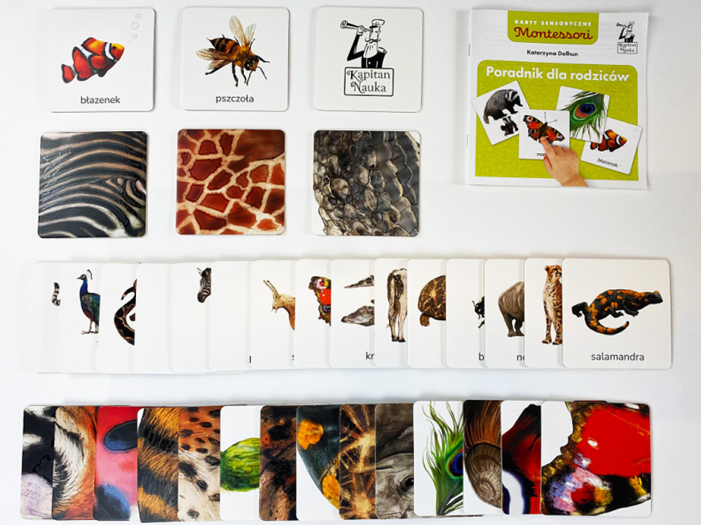 Montessori verila, že deti si užívajú pobyt v prírode. Preto ich povzbudzujeme, aby v prírode zapájali svoje zmysly zraku, hmatu, sluchu a čuchu a hrali sa s pomôckami, ako sú tieto karty. Realistické ilustrácie na týchto kartách sú dokonalým doplnkom ich vedomostí o svete okolo nich.