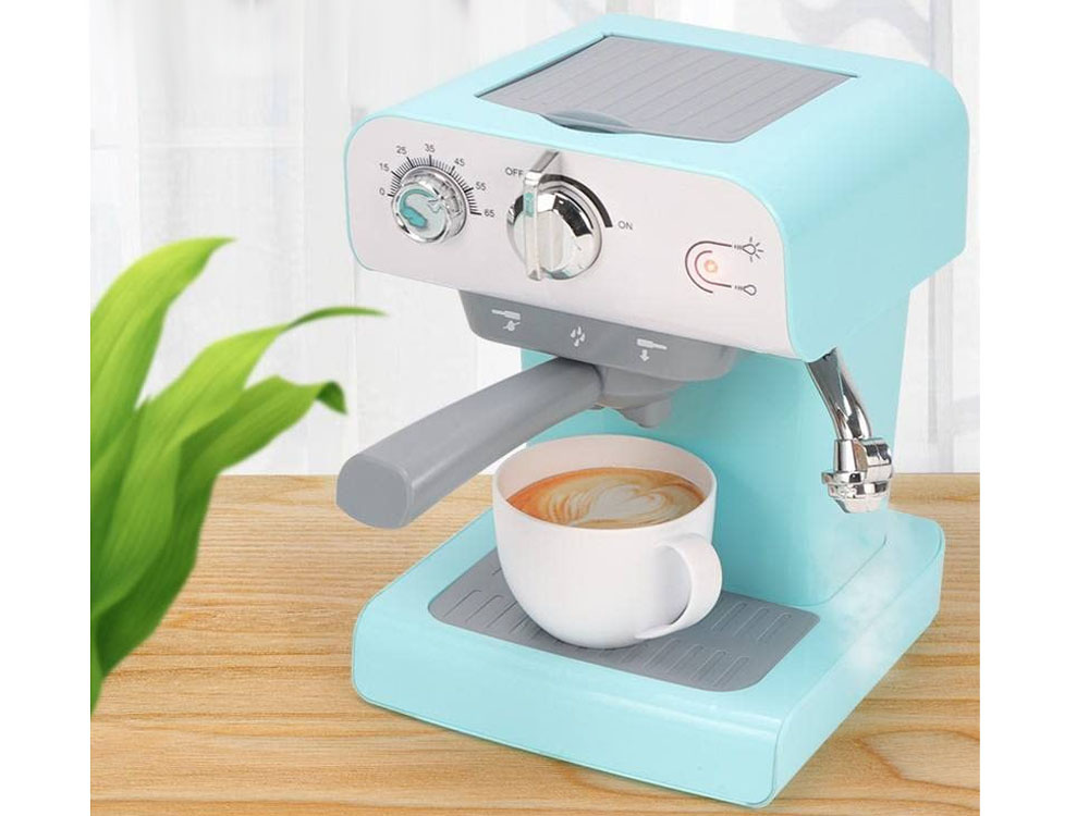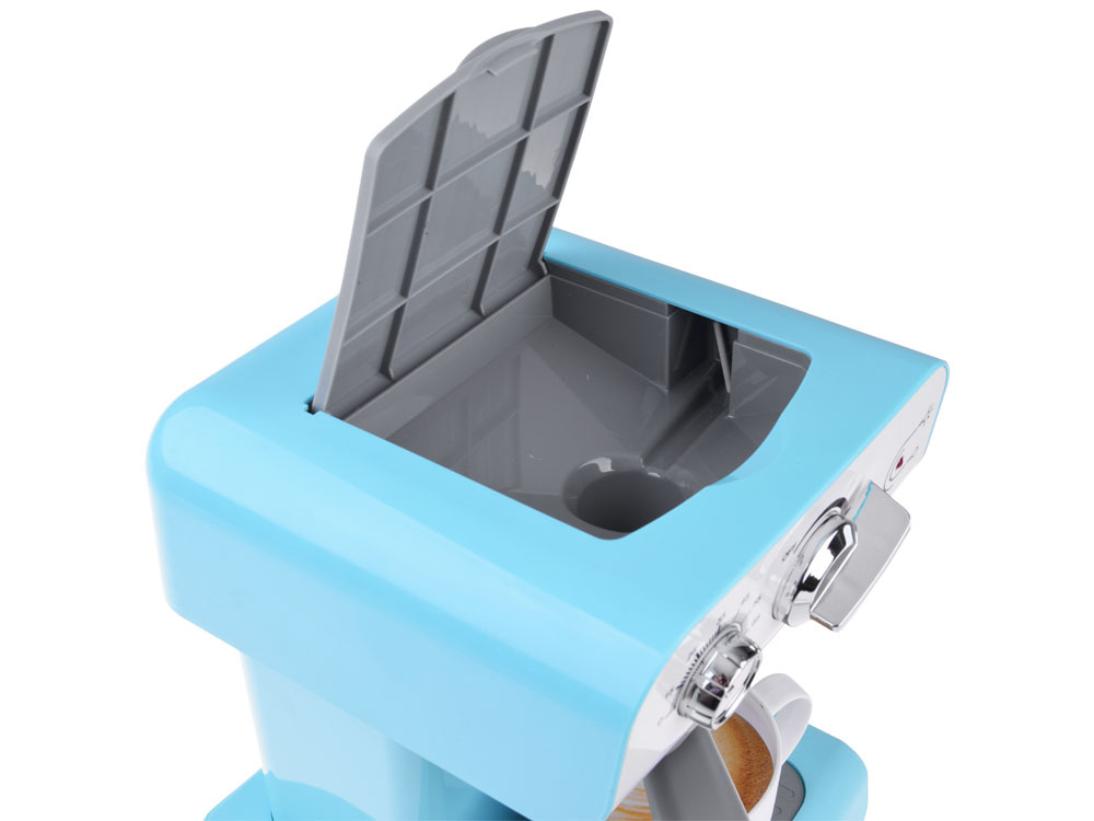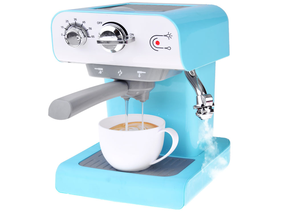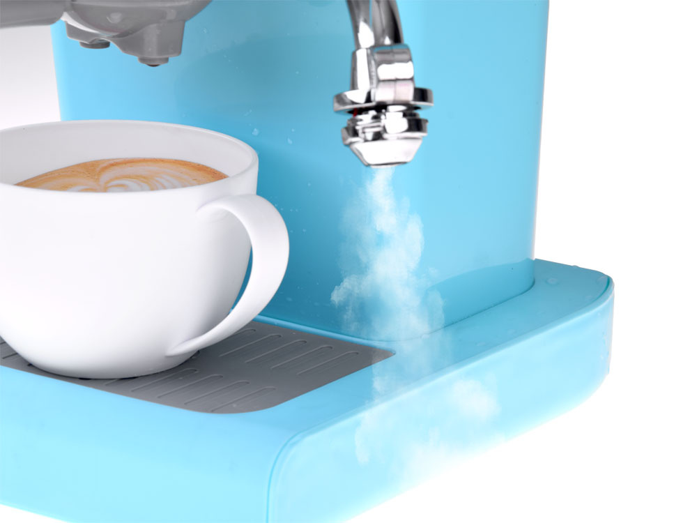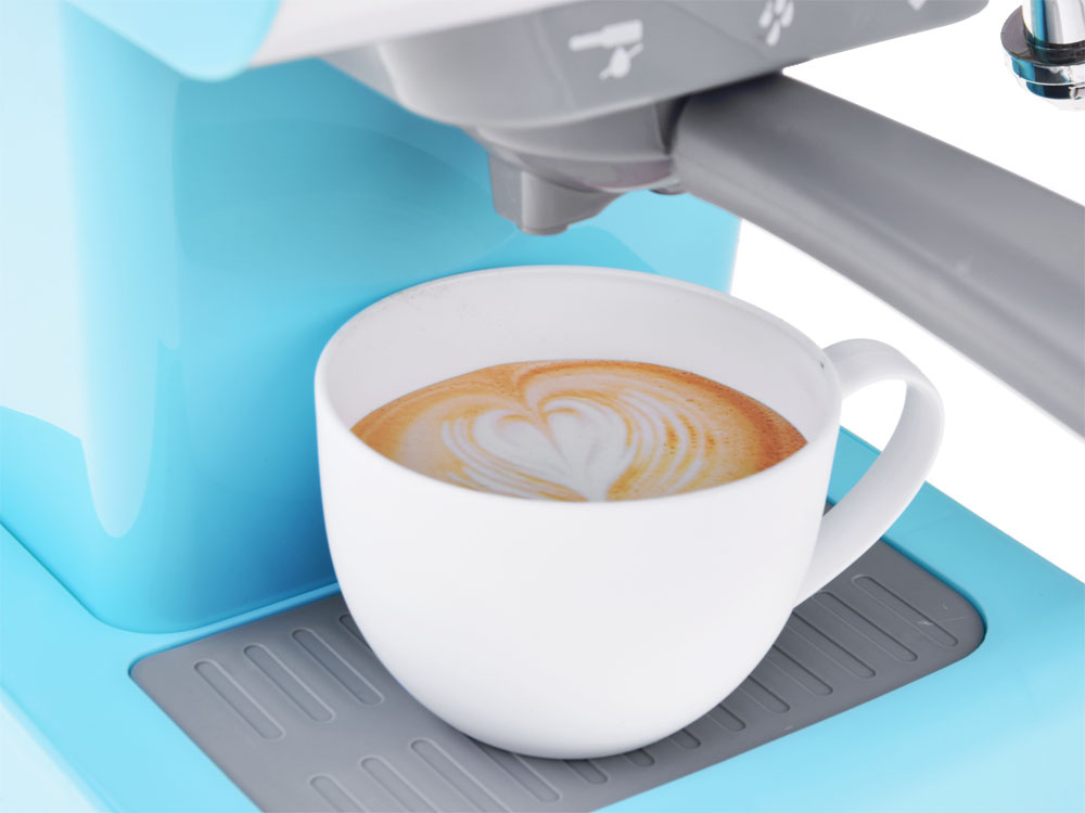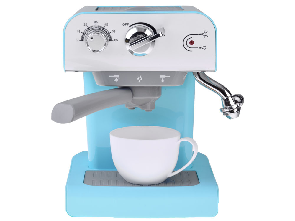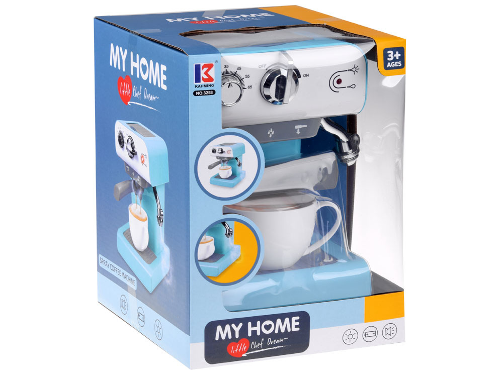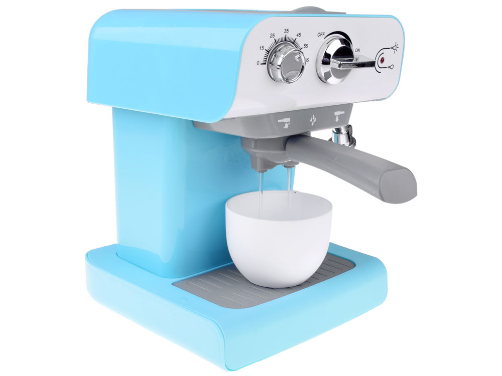 Espresso kávovar je neuveriteľne realistický a určite poteší každého mladého baristu. Uzamykateľná nádržka na vodu sa nachádza v hornej časti kávovaru . Kávovar je tiež vybavený gombíkmi. Zapína sa otočením gombíka do polohy ON. Po aktivácii budete počuť zvuk bežiaceho kávovaru a vytekajúcej vody.
