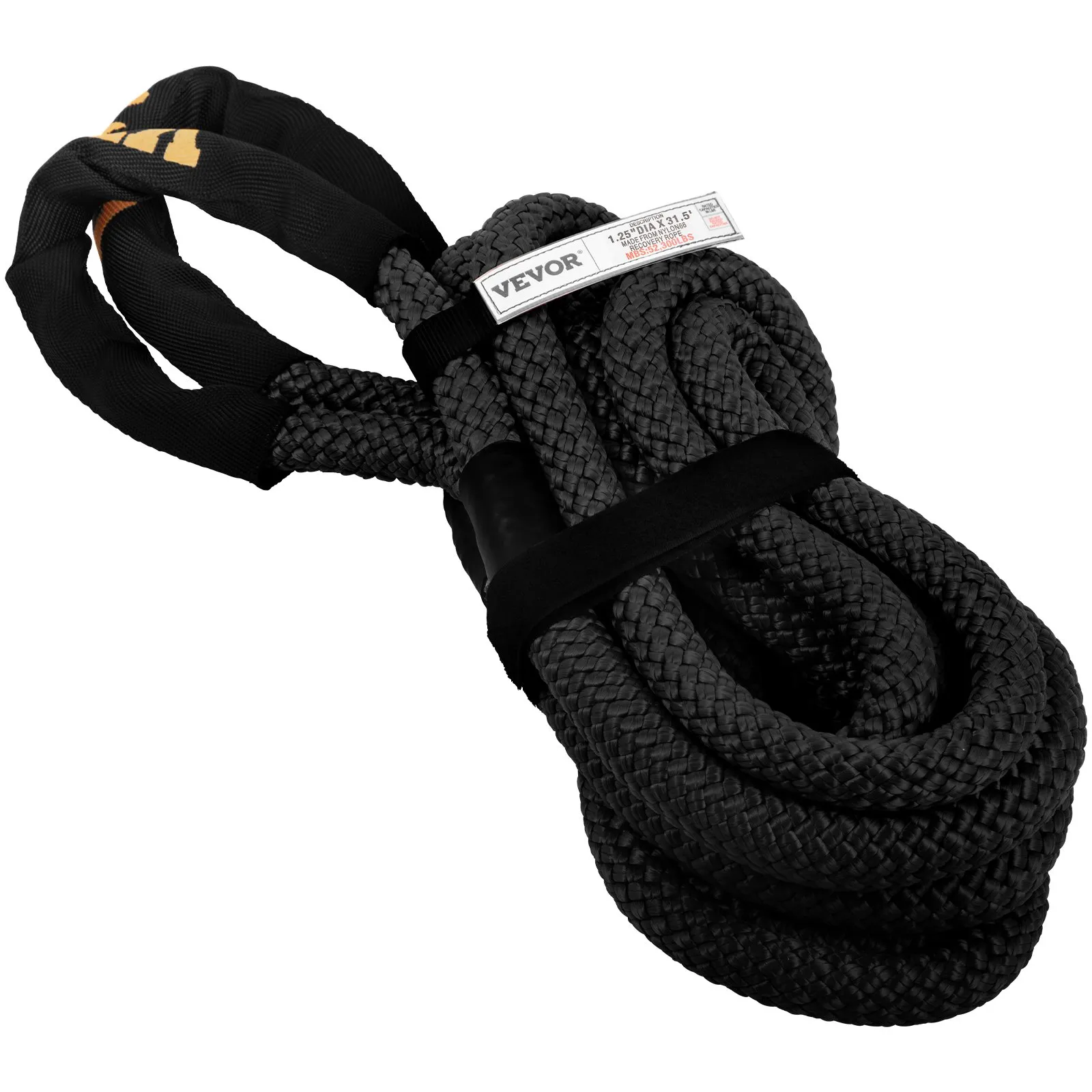 Kinetické ťažné lano 32 mm x 9,6 m 23 723 kg Dvojito opletené nylonové kinetické ťahacie lano so slučkami a ochrannými krytmi pre nákladné vozidlá, štvorkolky, UTV vrátane prepravnej tašky, čierne