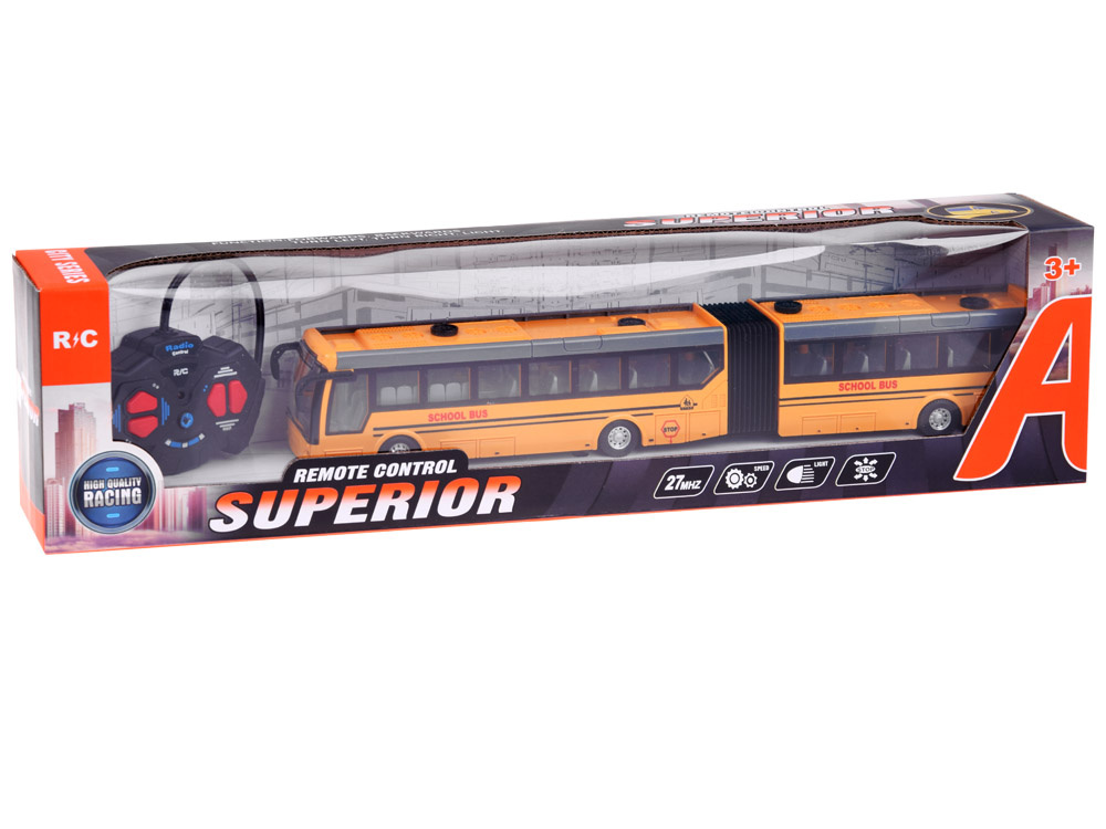 Školský autobus na diaľkové ovládanie je kĺbový autobus s dĺžkou 36,5 cm, čo je skutočná lahôdka pre každého vodiča takého veľkého vozidla. Žlté vozidlo je vyrobené výlučne z plastu a počas jazdy má LED svetlá.