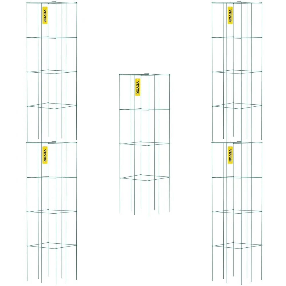 Klietky na paradajky, 30 x 30 x 117 cm, sada 5 štvorcových klietok na podporu rastlín, odolné veže na zelené paradajky vyrobené z ocele s PVC povlakom na popínavú zeleninu, rastliny, kvety a ovocie.