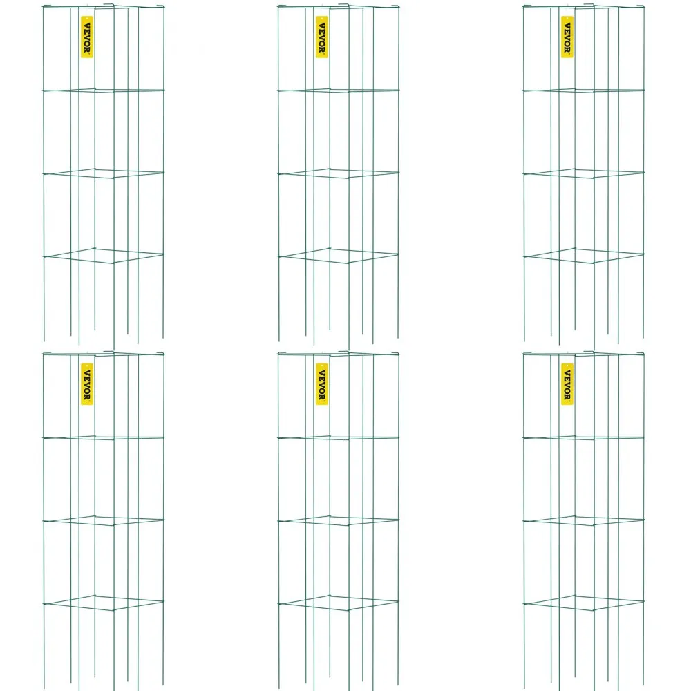 Klietky na paradajky, 37 x 37 x 100 cm, sada 6 štvorcových klietok na podporu rastlín, odolné veže na zelené paradajky vyrobené z ocele s PVC povlakom na popínavú zeleninu, rastliny, kvety a ovocie.