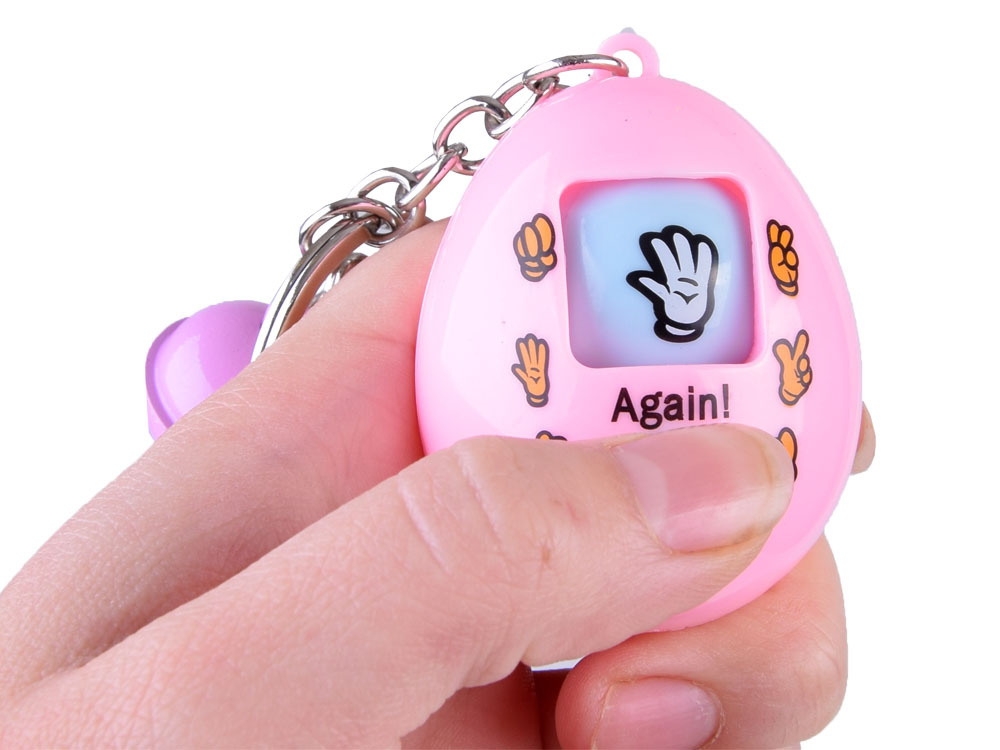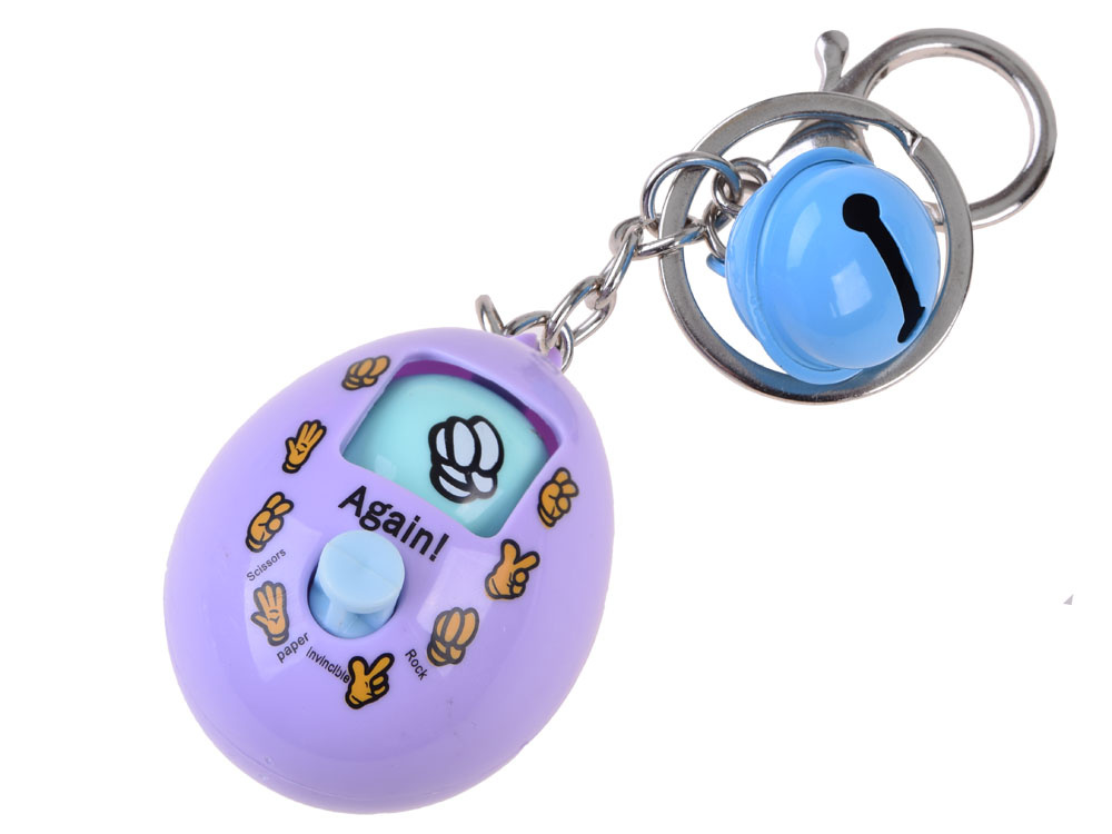 Táto farebná kľúčenka v tvare vajíčka s hrou je ideálna do školského batohu alebo kabelky. Na kľúčenke je nápis s obľúbenou hrou „kameň, papier, nožnice“. Stačí stlačiť tlačidlo a na otočnej labke sa zobrazí daný symbol. Táto skvelá vychytávka je ideálna na čakanie na autobus alebo na uzatváranie stávok s kamarátom.