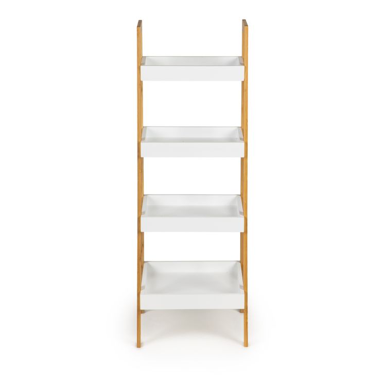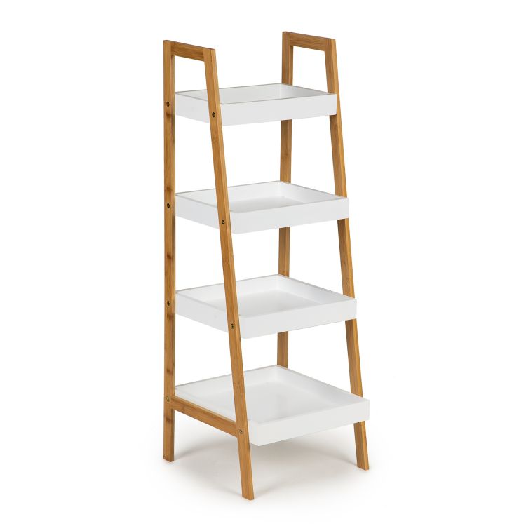 Nohy skrinky sú vyrobené z pevného bambusu . Policový diel je všestranný a vhodný do kúpeľne, obývačky, spálne alebo kancelárie . Štyri priestranné a praktické police sú vyrobené z lakovaného MDF . Použité materiály sú vysoko kvalitné, dobre opracované – bez ostrých hrán . Výrobok si vyžaduje svojpomocnú montáž podľa jasného poľského návodu.