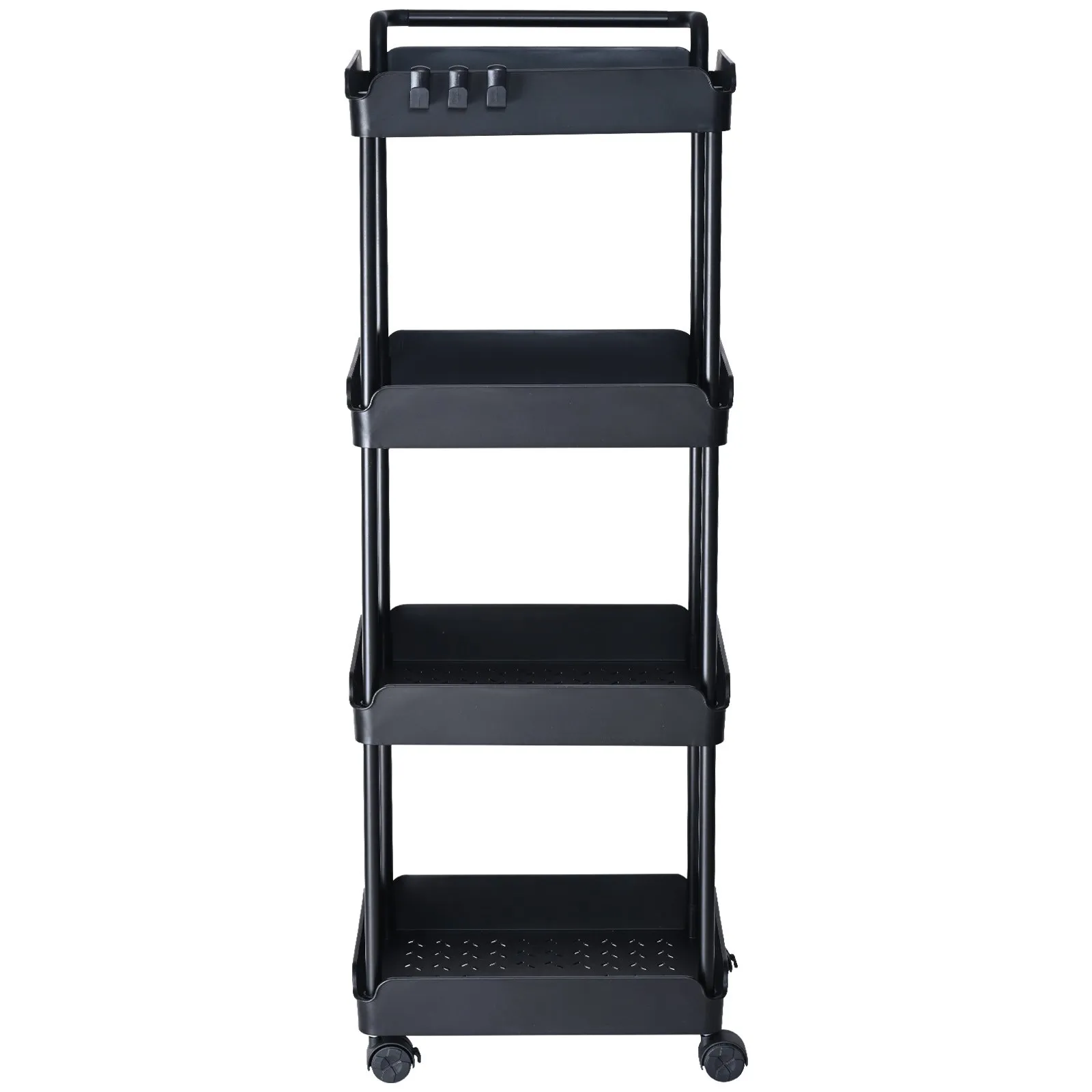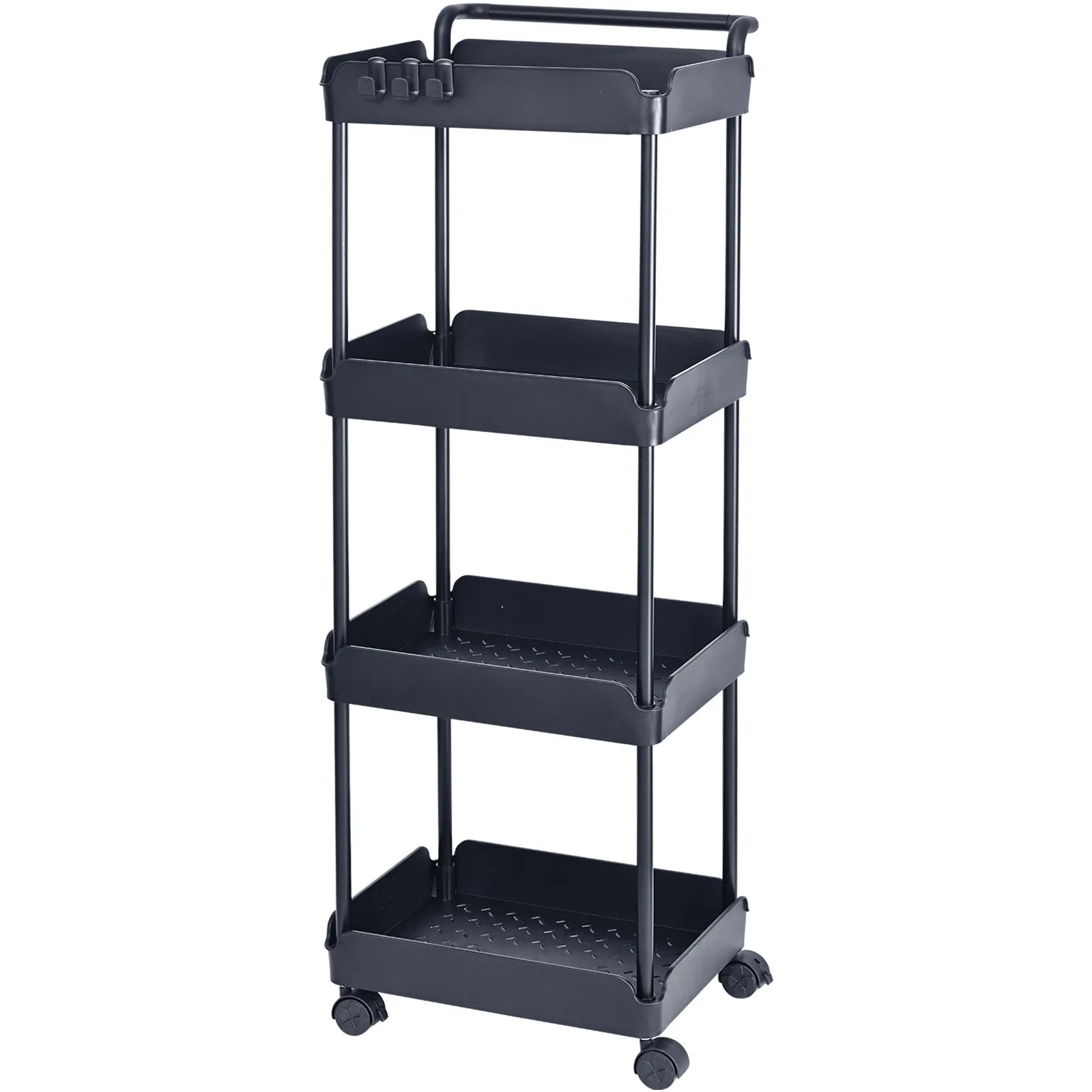 Kolieskový vozík, kuchynský vozík so 4 policami, kuchynská polica, výklenková polica s kolieskami, kúpeľňová polica 370x355x1065 mm, úložný vozík s nosnosťou 60 kg, viacúčelový kolieskový vozík, čierny upratovací vozík, servírovací vozík