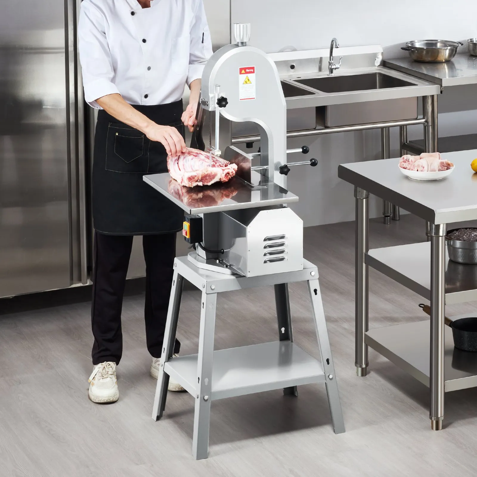 Komerčná elektrická pásová píla na mäso a kosti, vertikálna píla na kosti 1800 W, pracovný stôl 380 x 485 mm, krájač mrazeného mäsa s čepeľou na rebrá, bravčové mäso