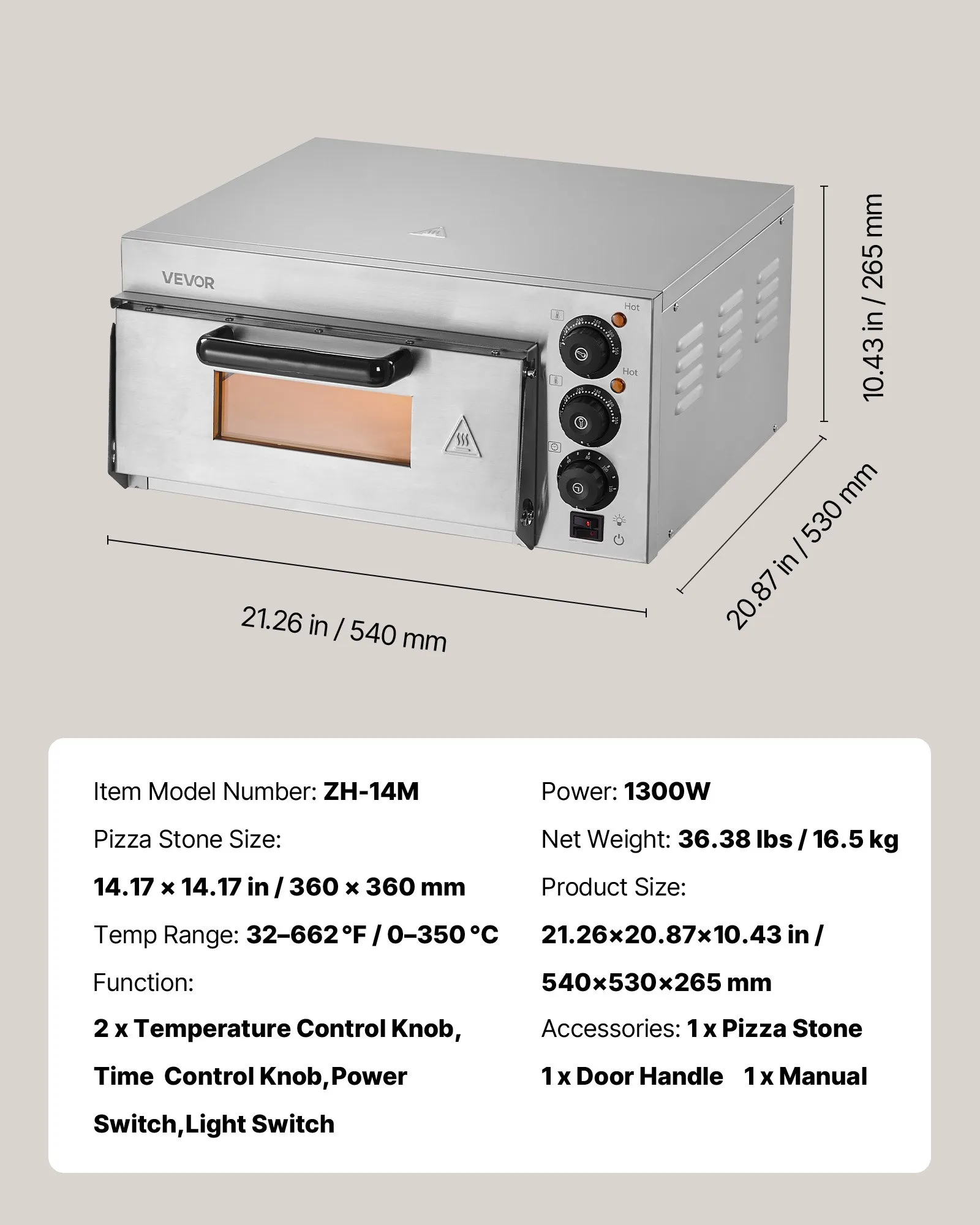 Vychutnajte si chrumkavú pizzu zakaždým: S výkonnou 1300-wattovou pecou na pizzu upečiete chrumkavú a lahodnú pizzu už za pár minút. Vďaka dvojitým vykurovacím telesám v hornej a spodnej časti zabezpečuje rovnomerné prepečenie a dostatočné teplo na rýchlu a lahodnú prípravu pizze zakaždým.